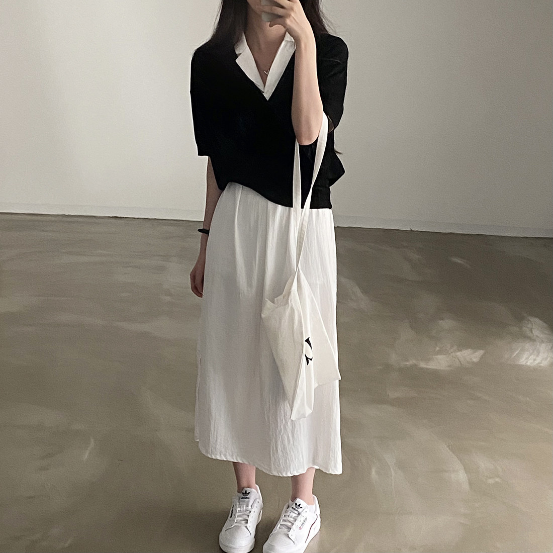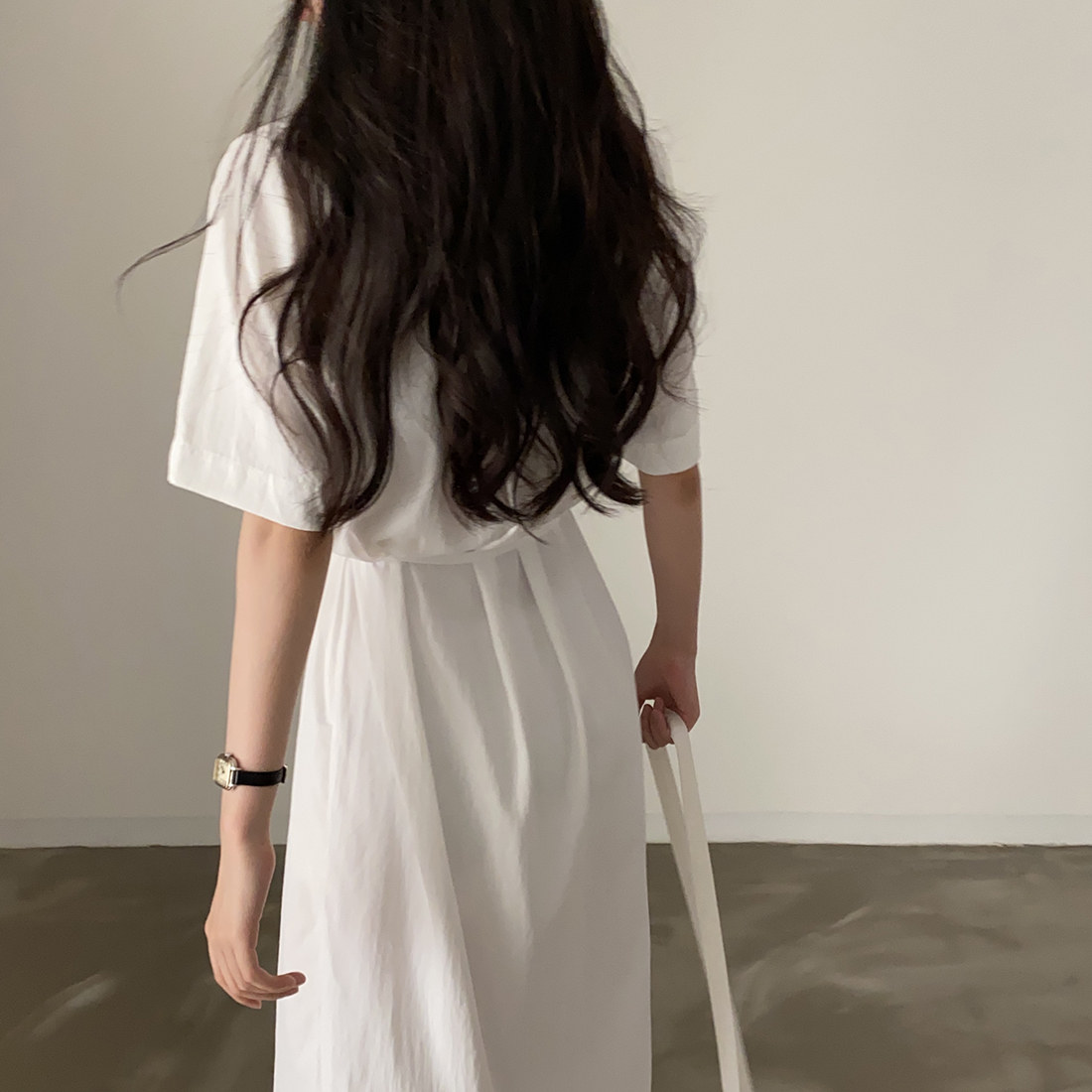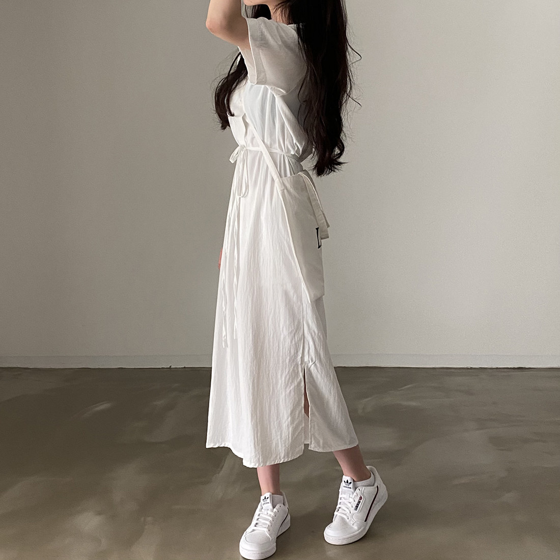 ロングワンピースとして一枚で上品な着こなしが完成します。