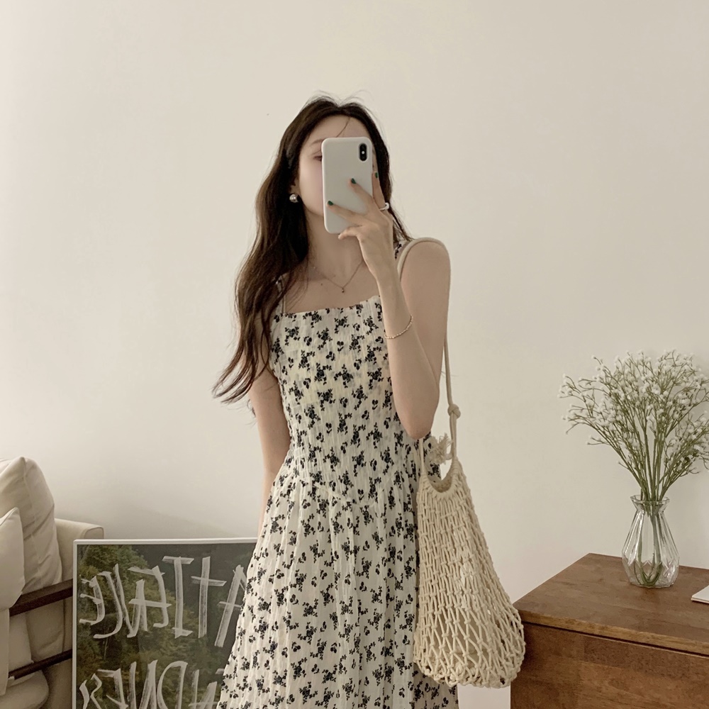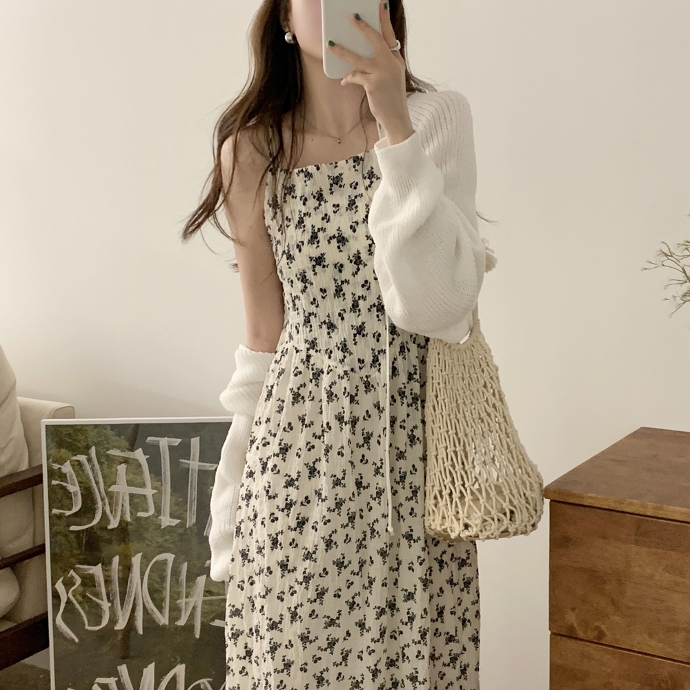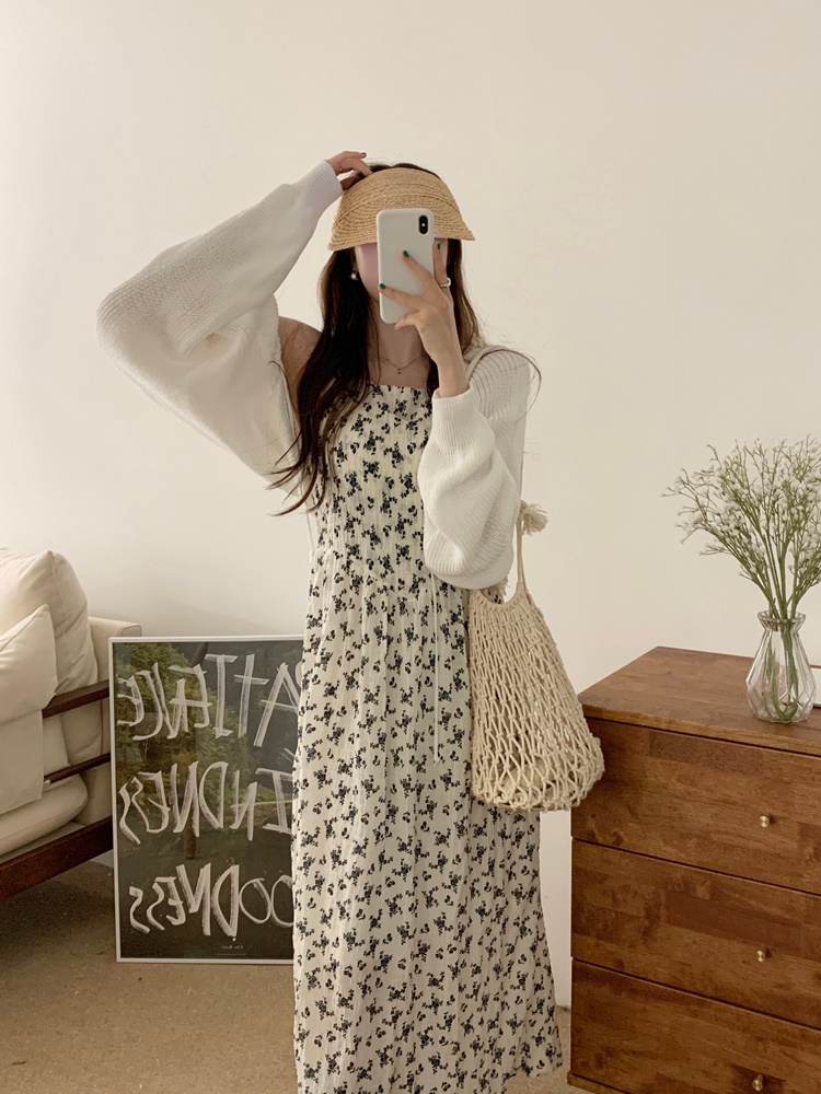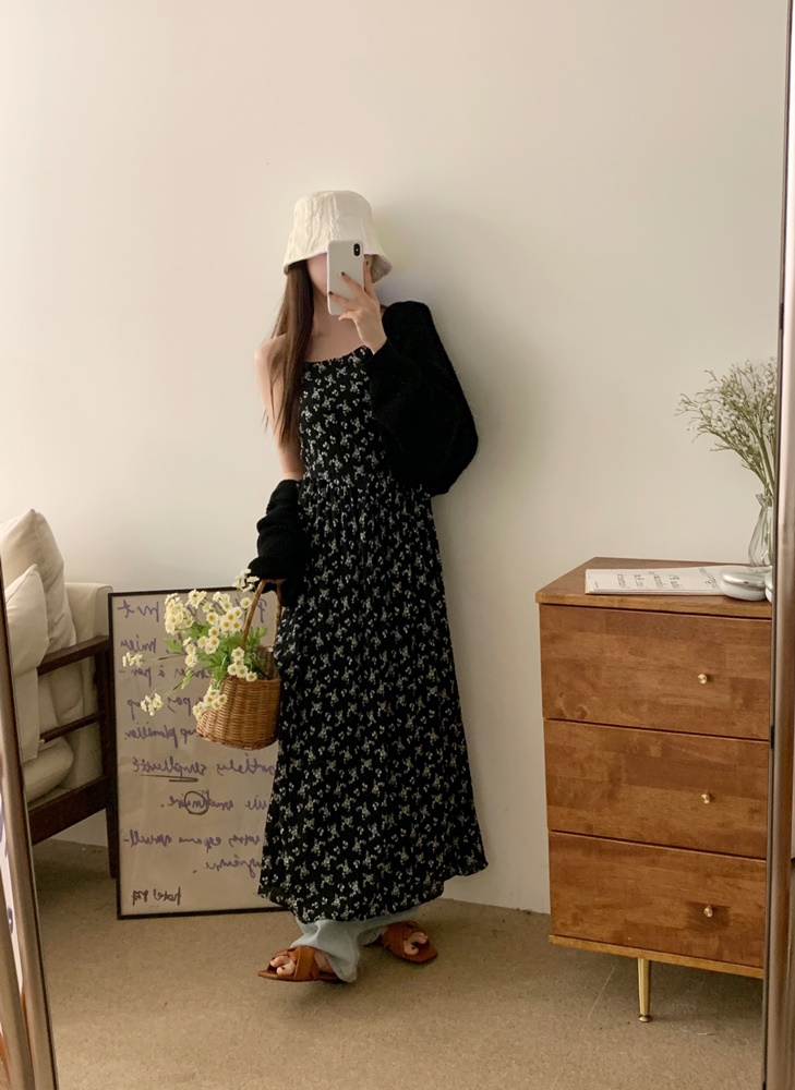 今季注目の韓国風デザインが魅力的な花柄キャミワンピース。