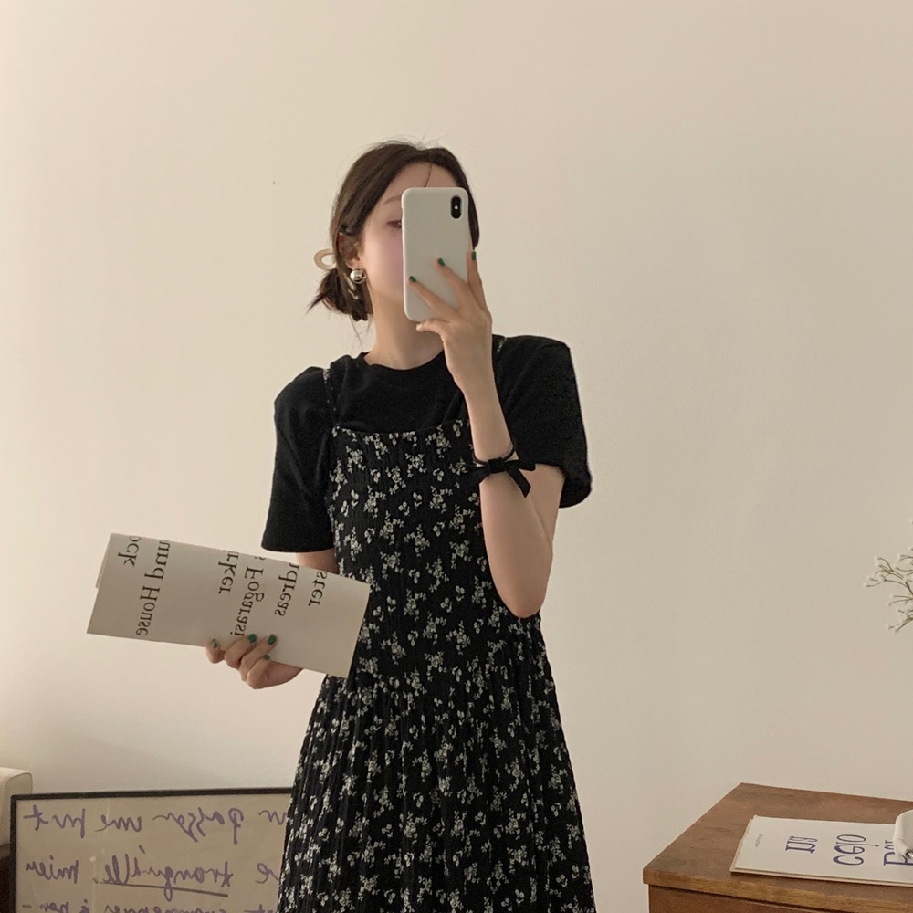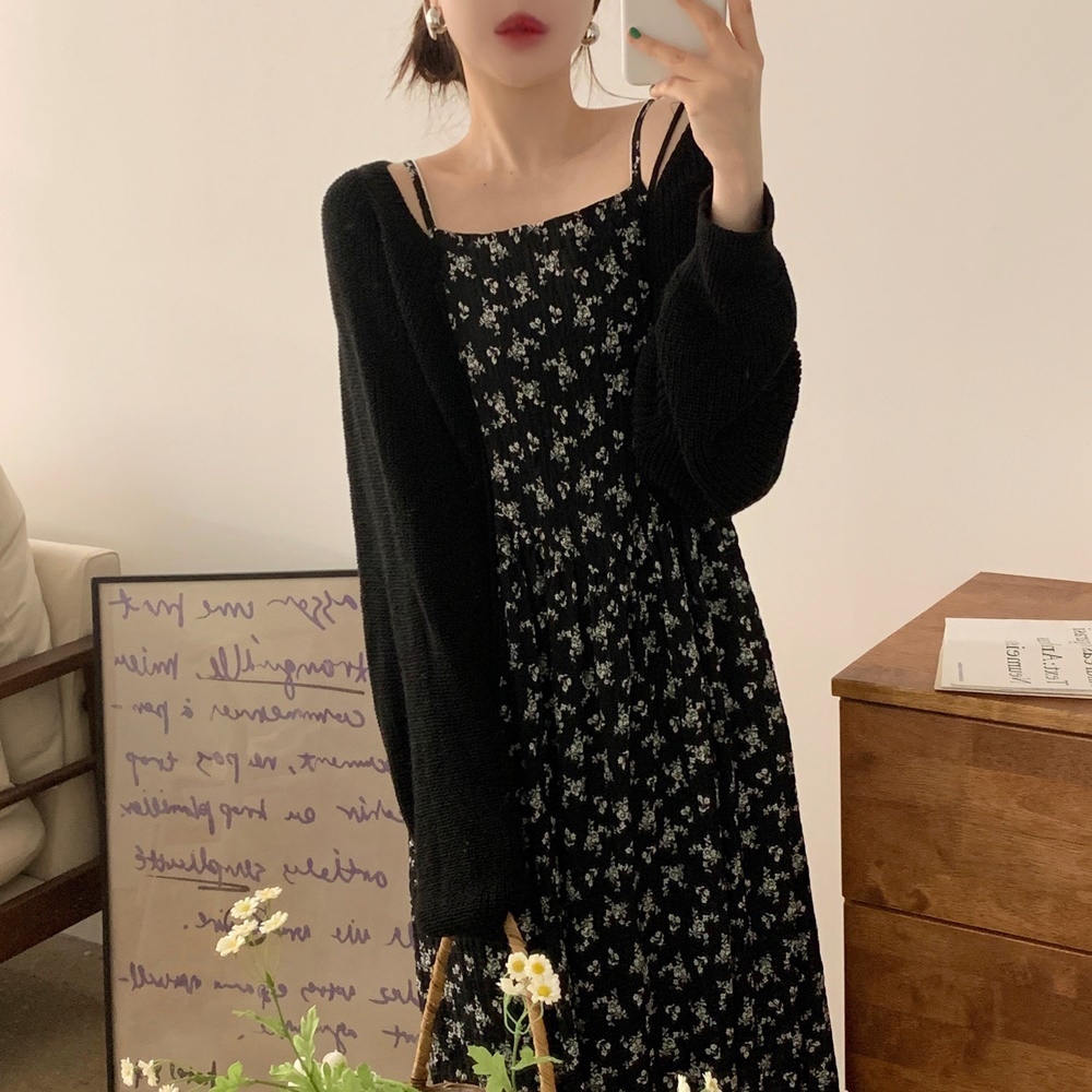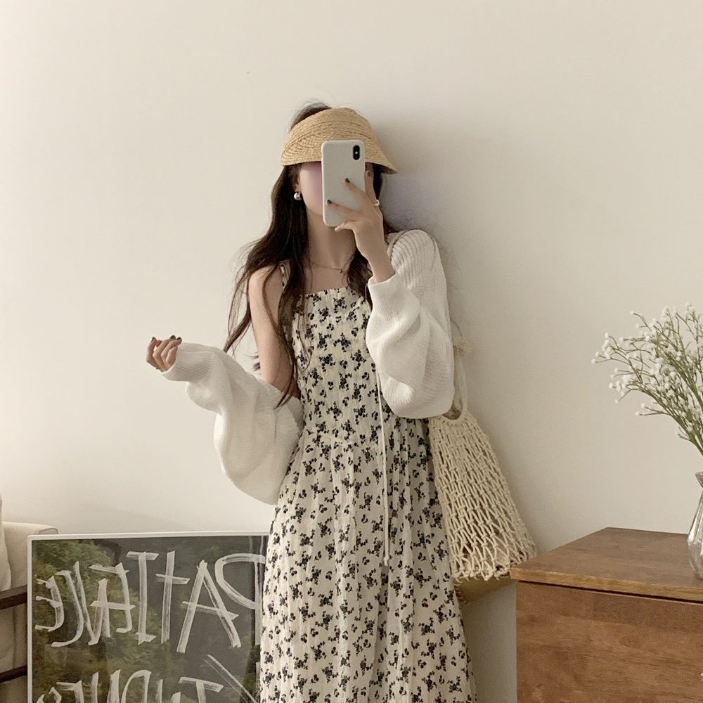 今季注目の韓国風デザインが魅力的な花柄キャミワンピース。