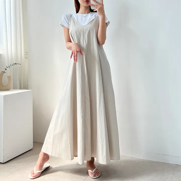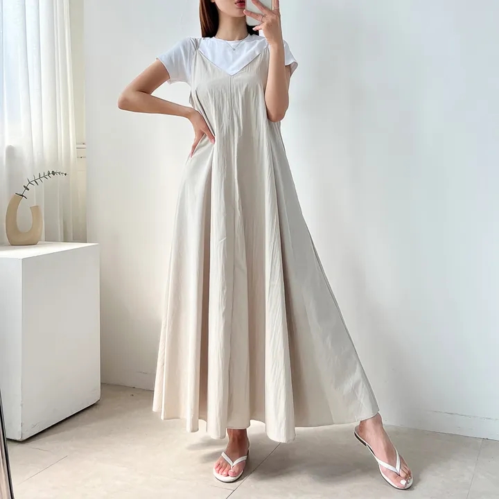 今季注目の韓国風デザインが魅力的なロングワンピース。
