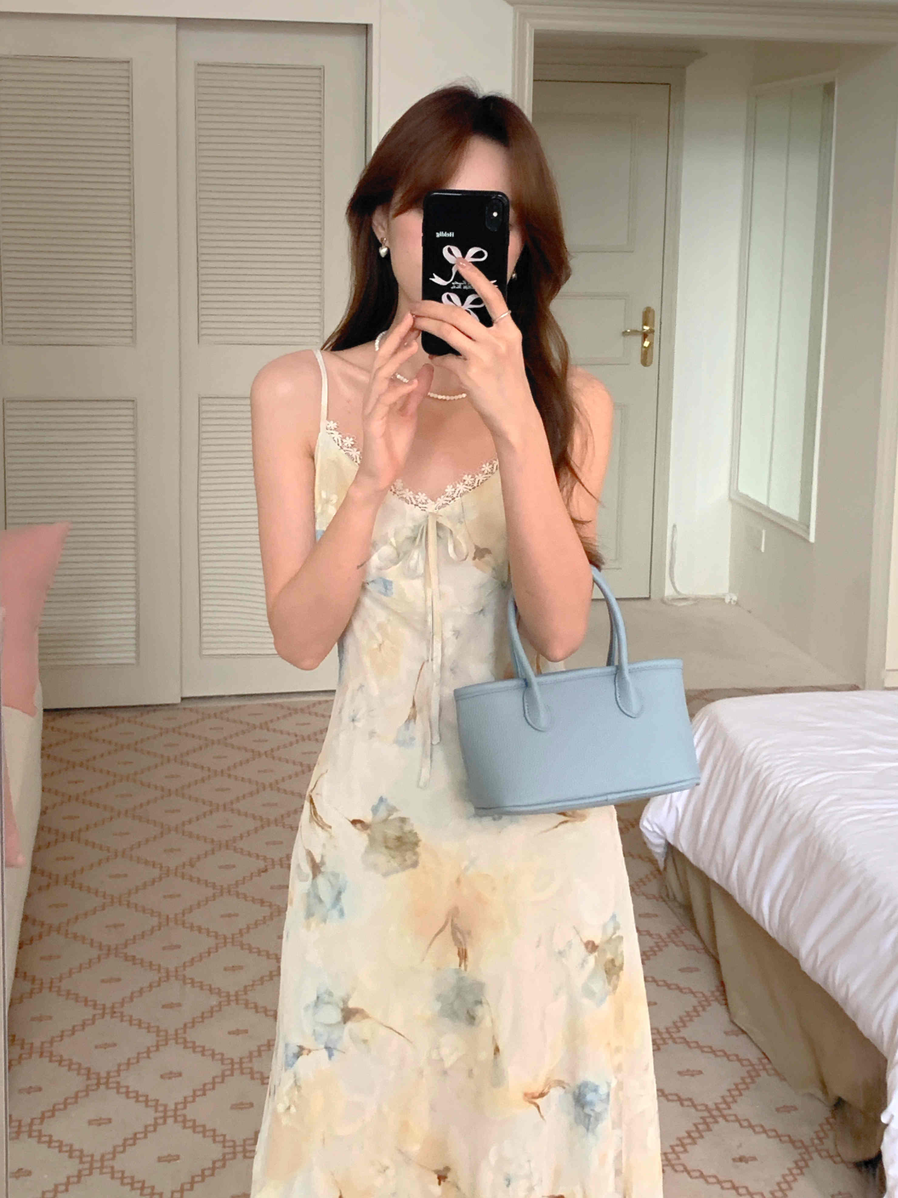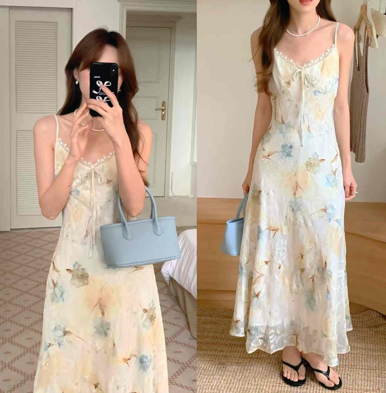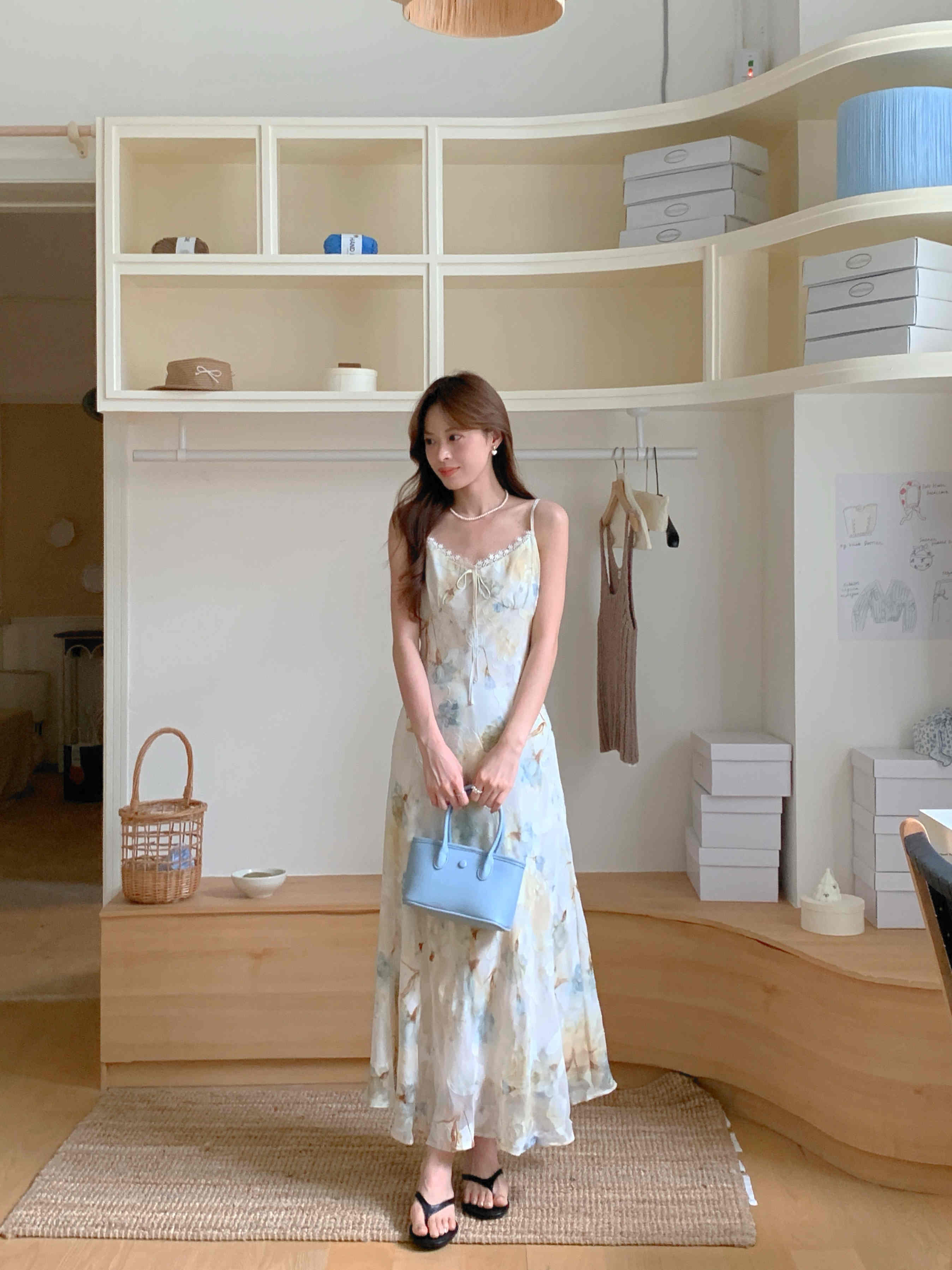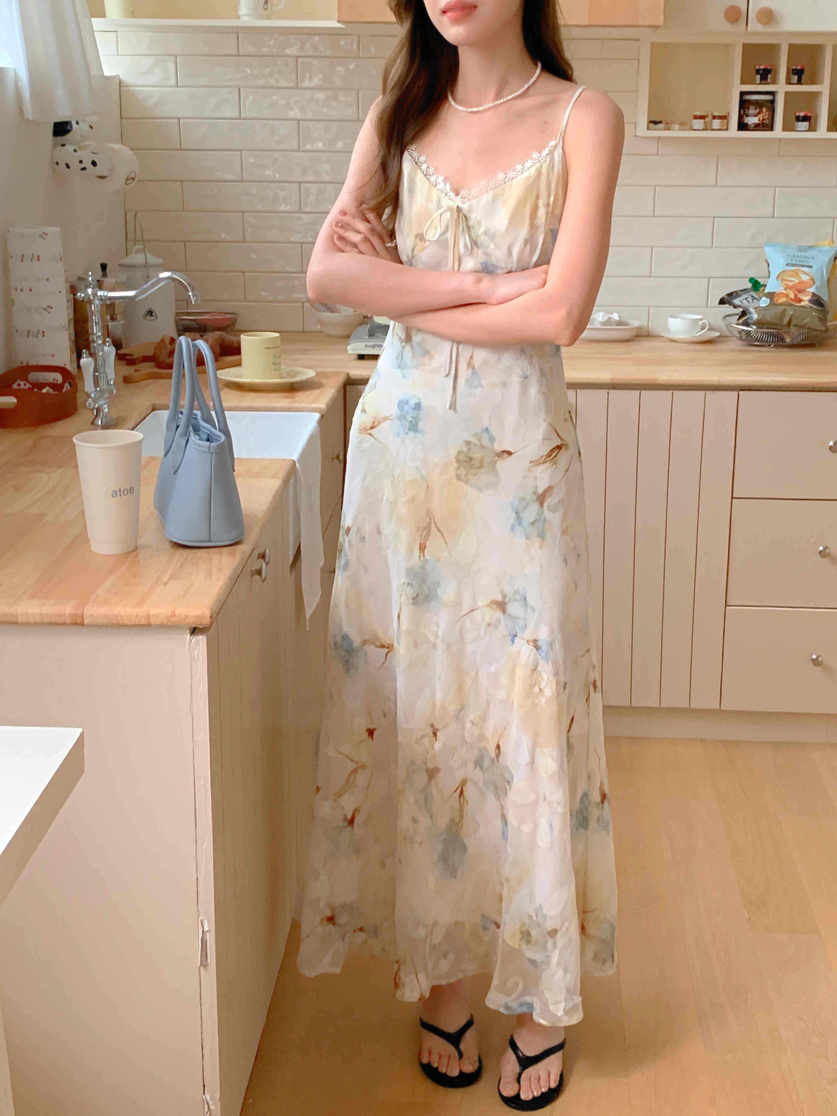 今季注目の韓国風デザインが魅力的なキャミタイプのロングワンピース。