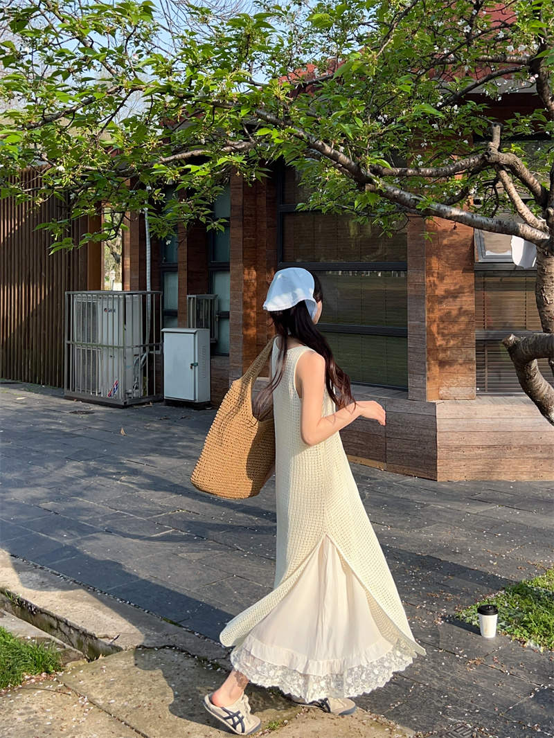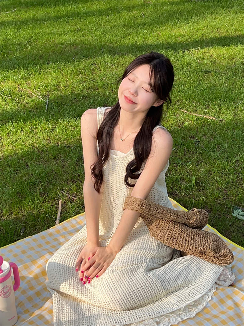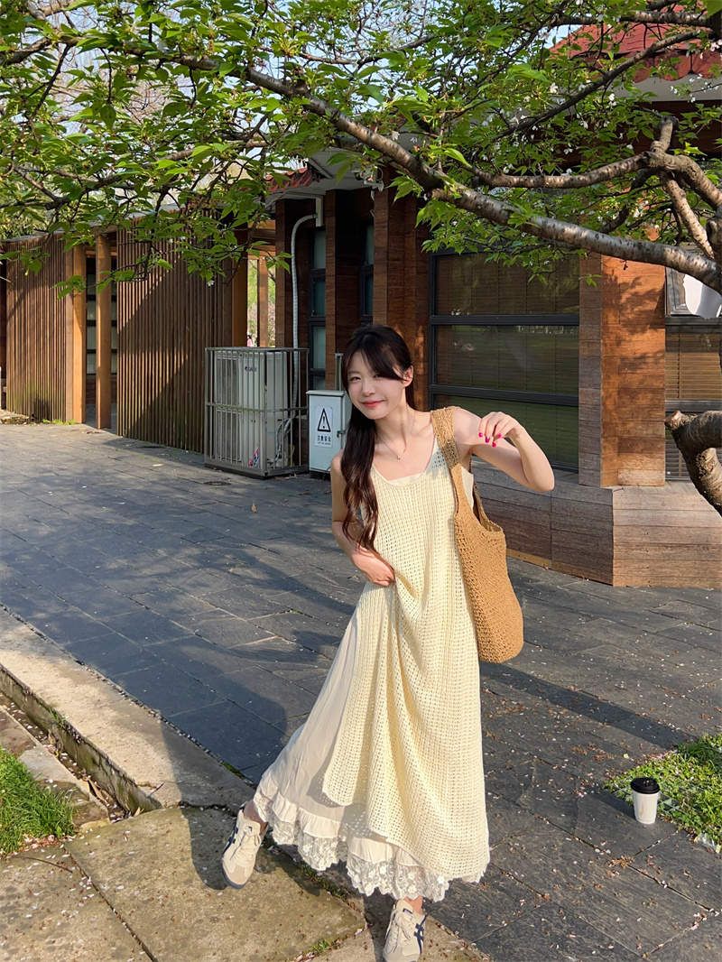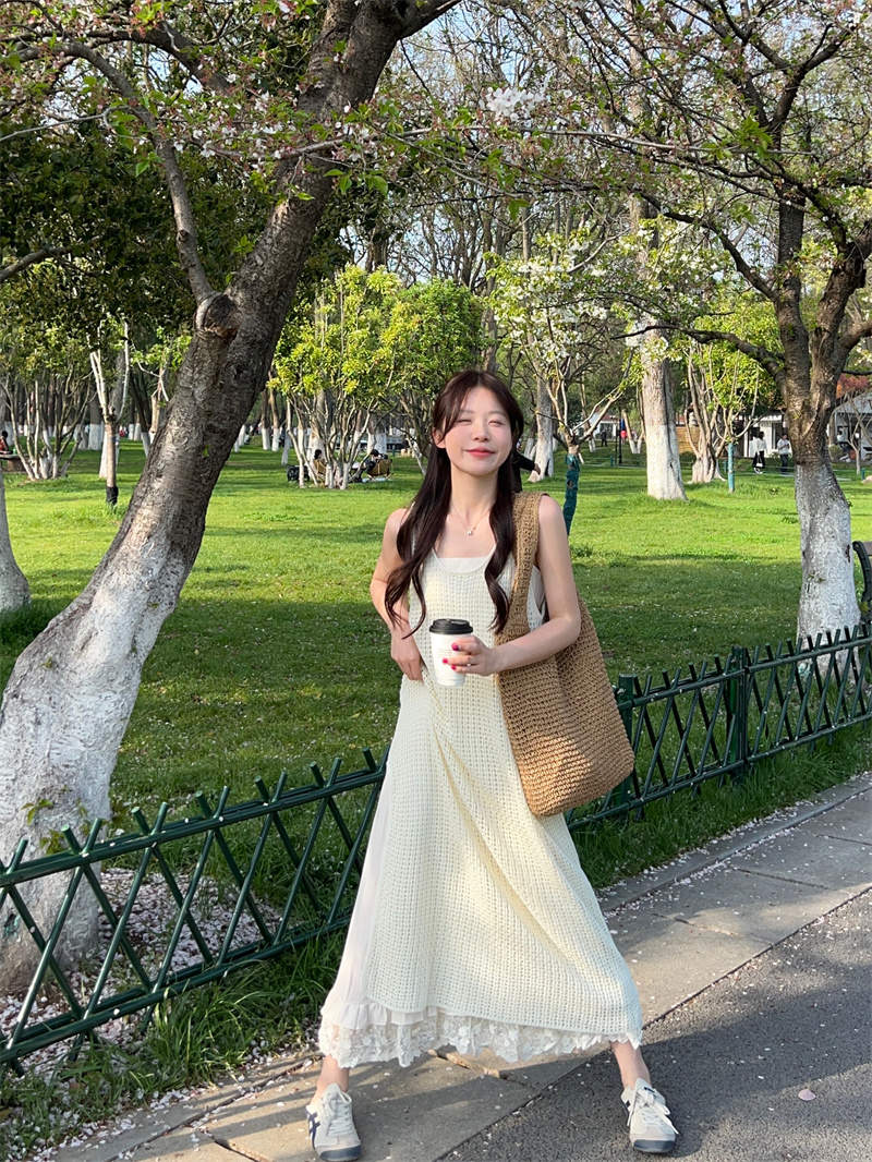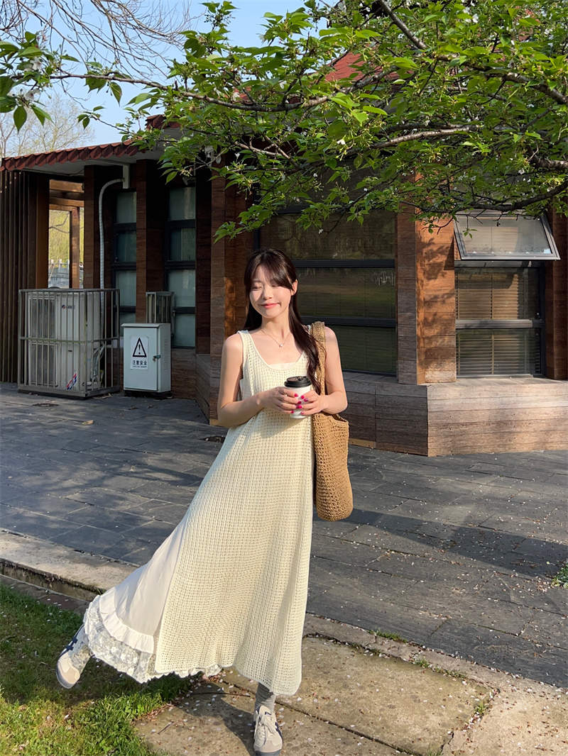今季注目の韓国風デザインが魅力的なキャミタイプのロングワンピース。