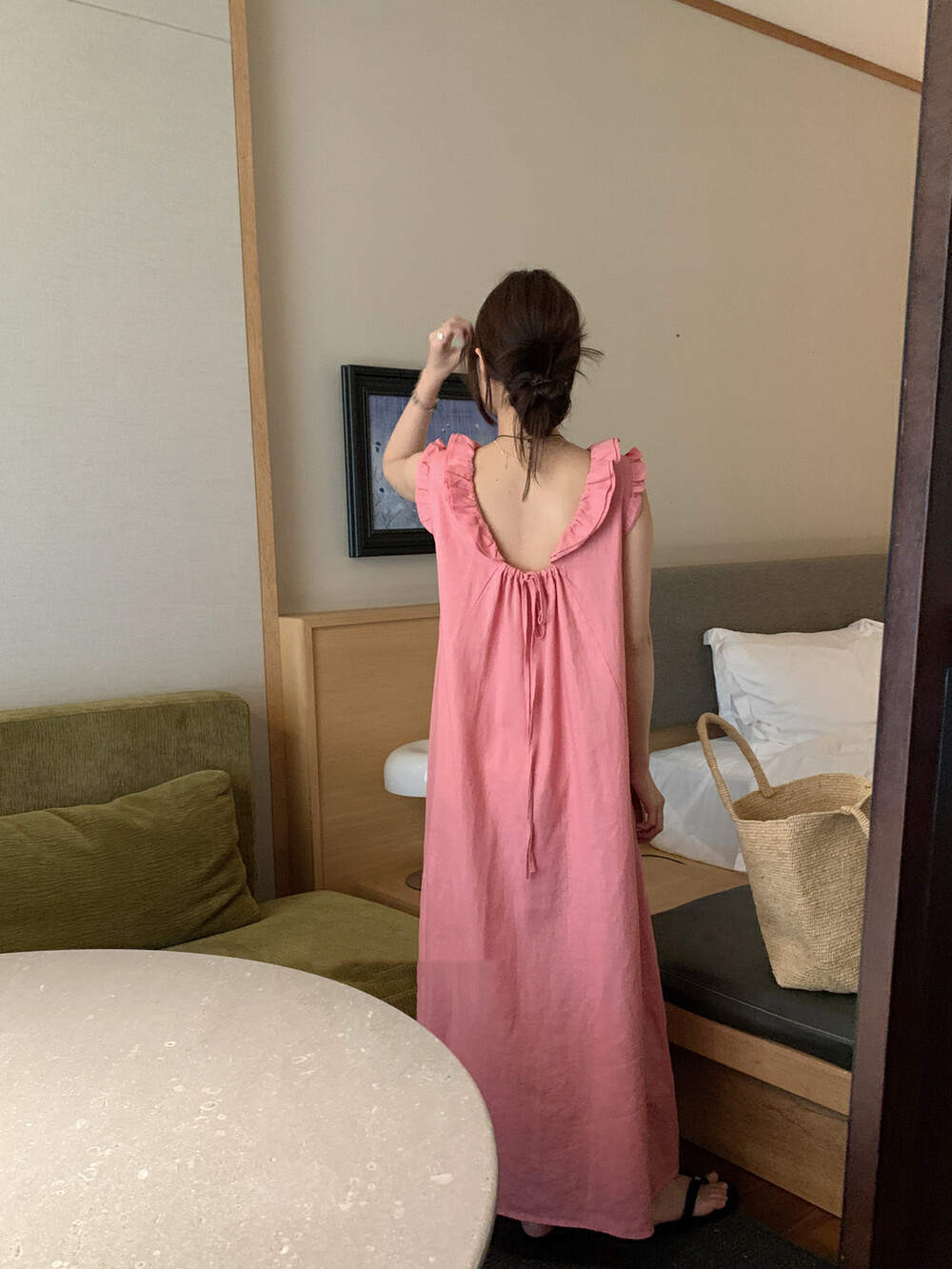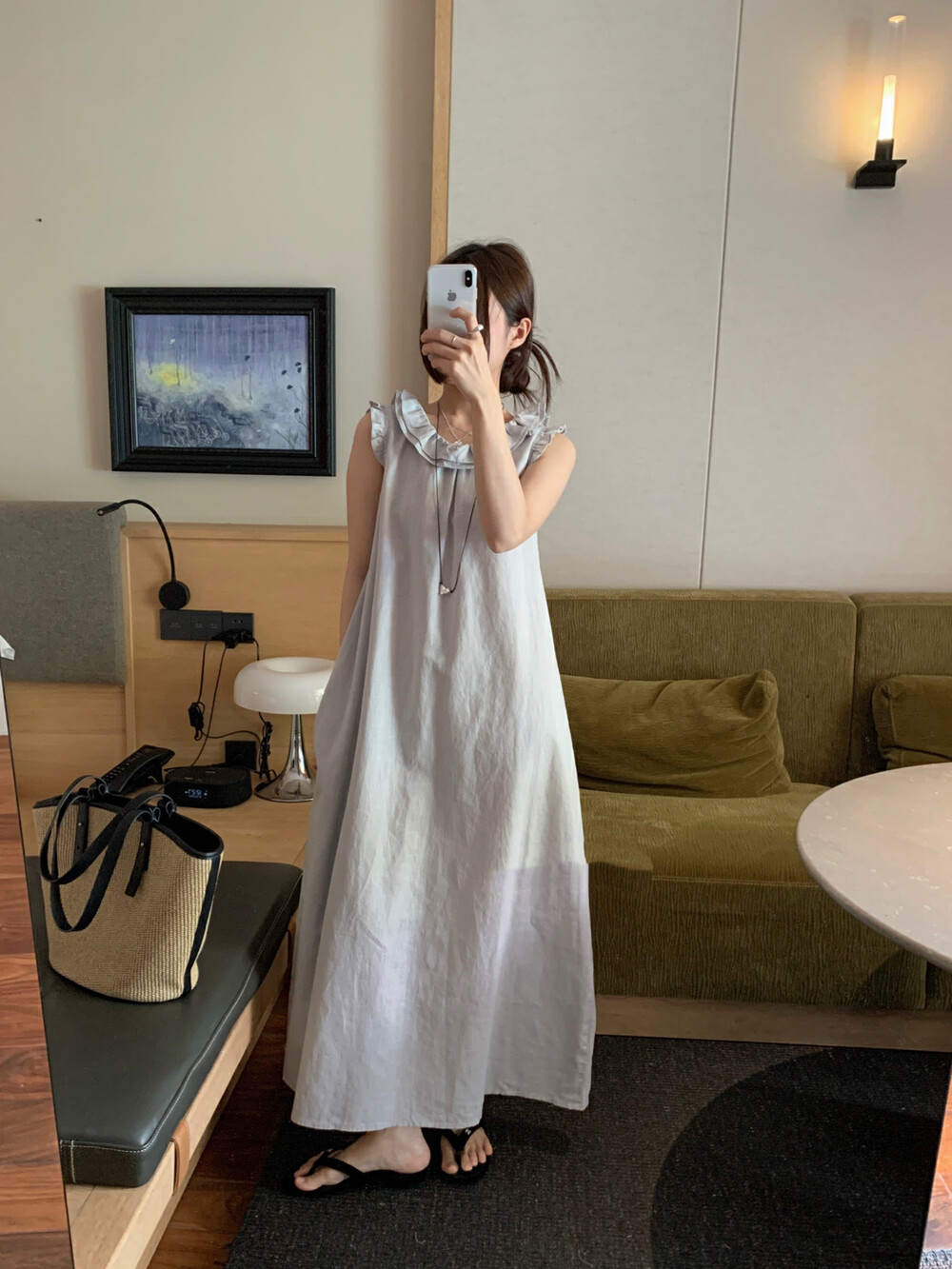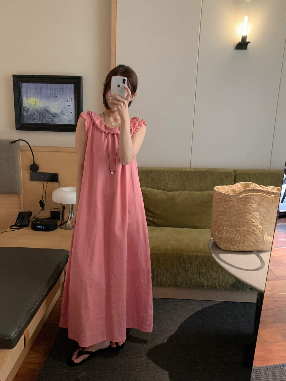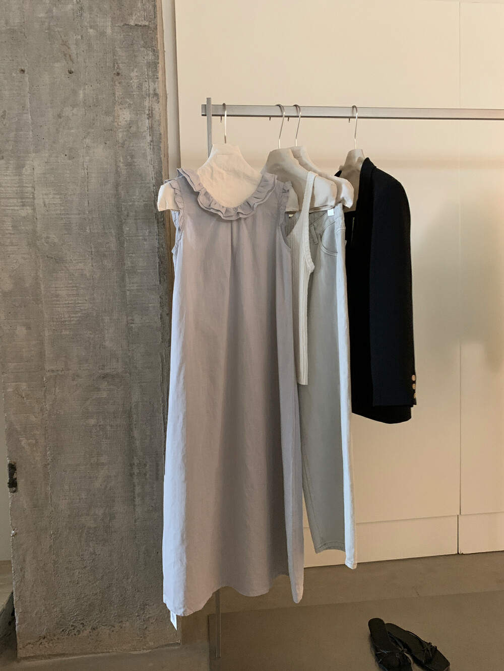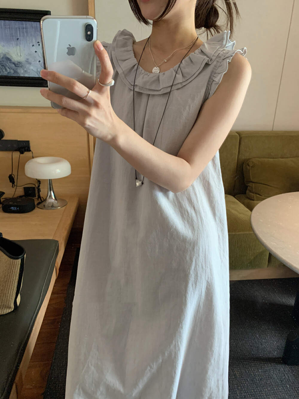 今季注目の韓国風デザインが魅力的なノースリーブロングワンピース。