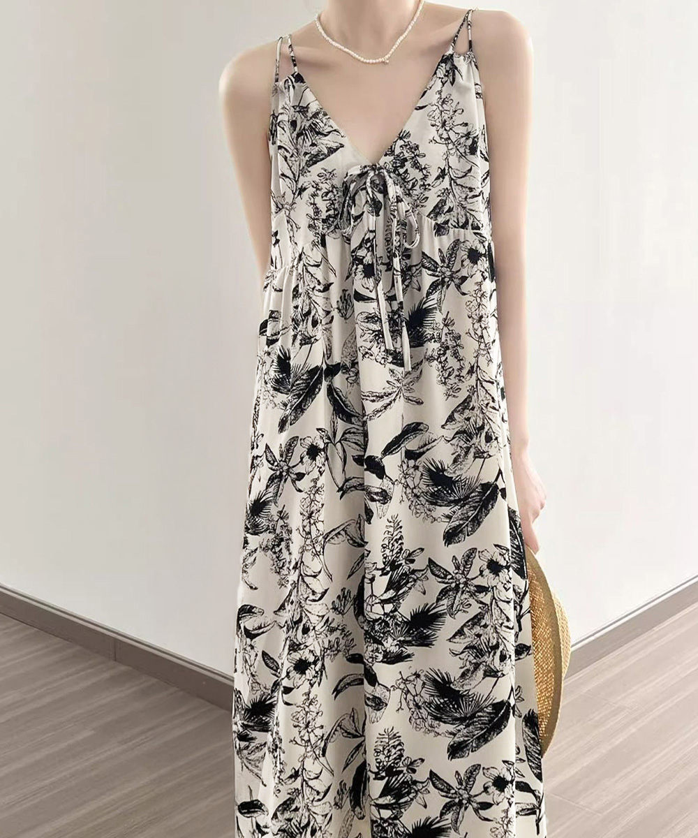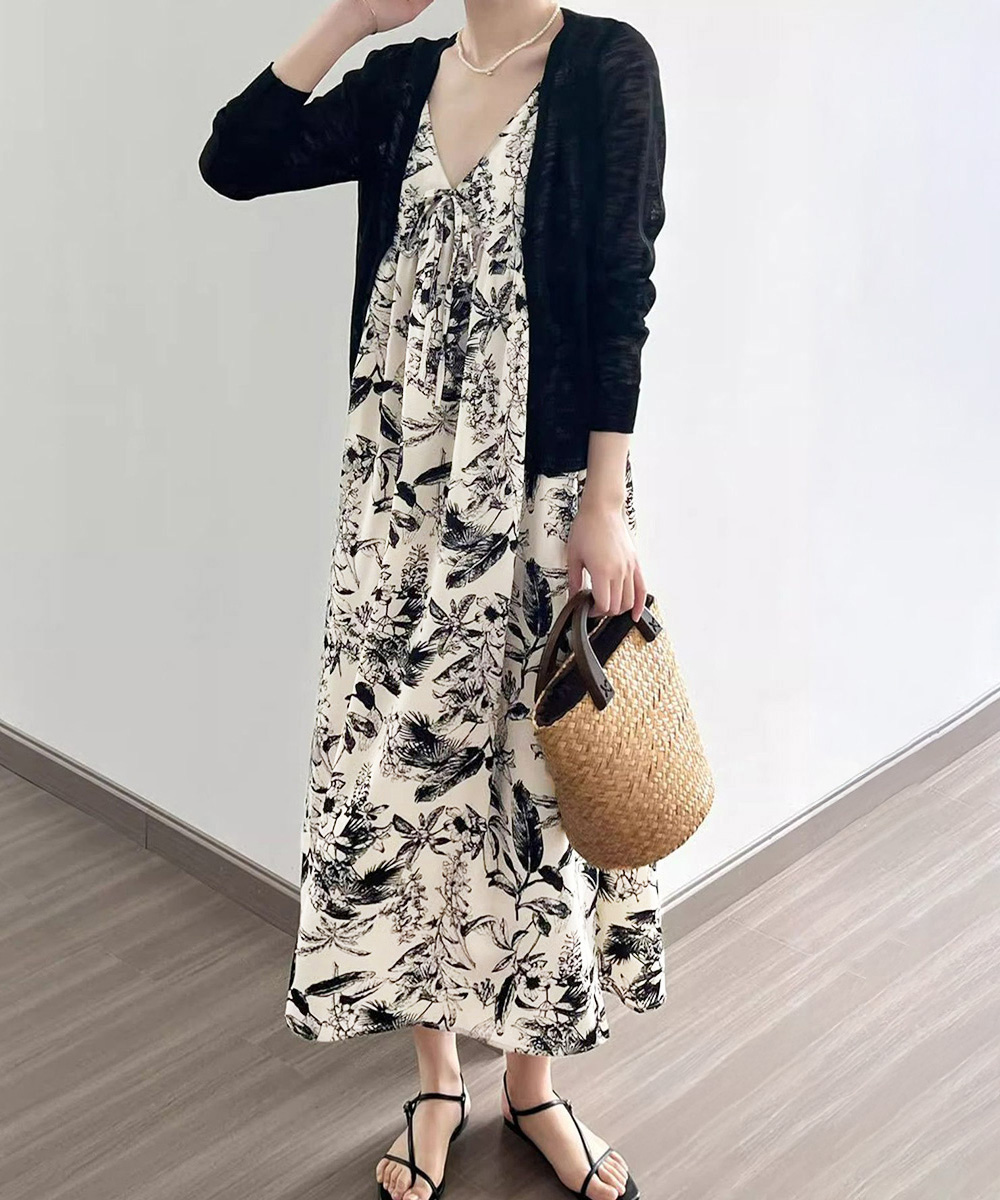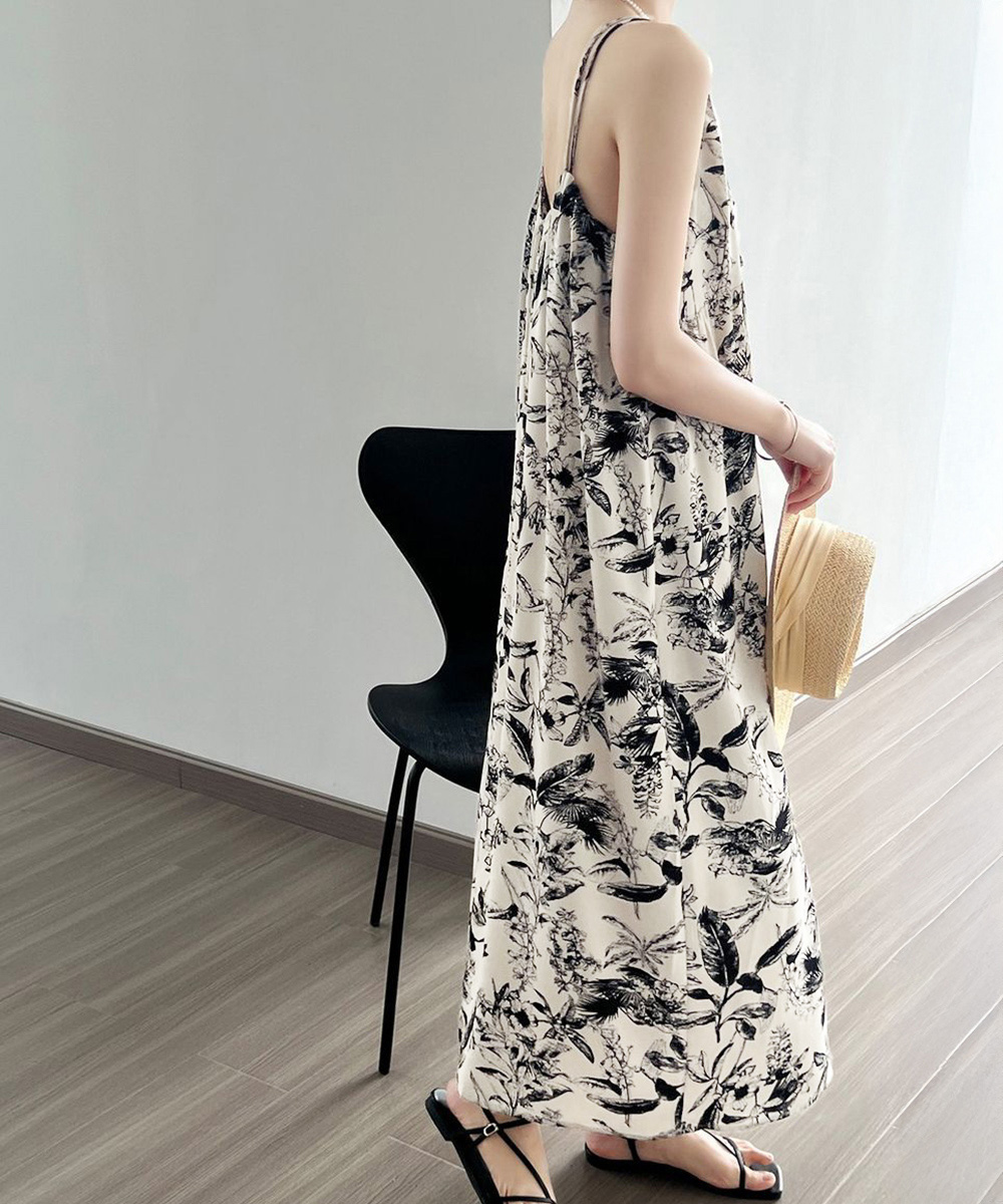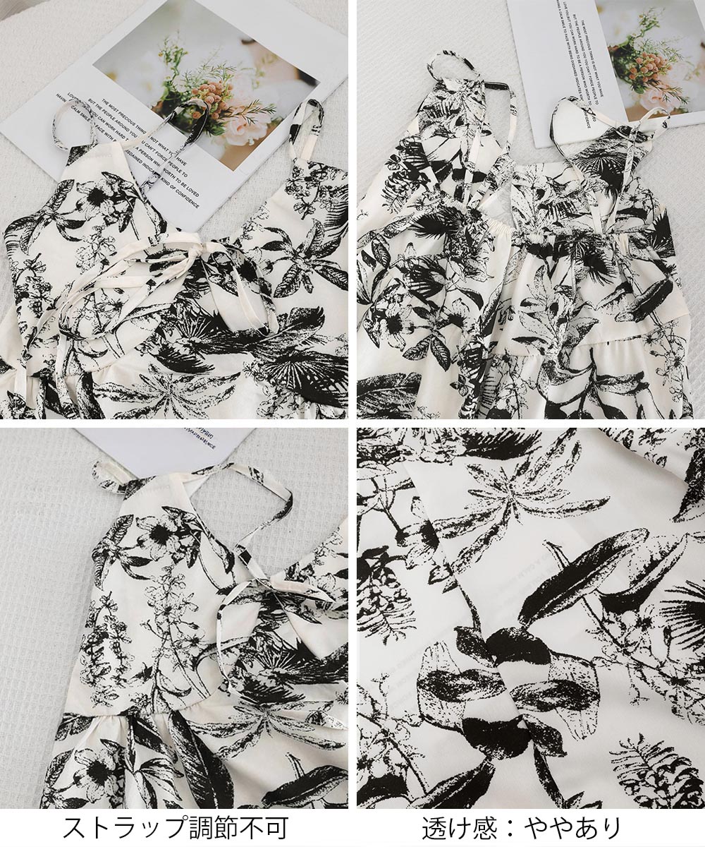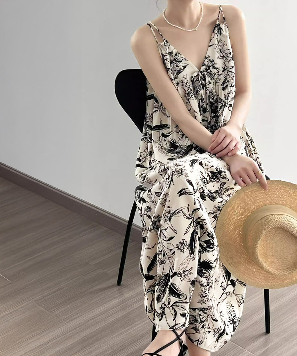 夏の涼やかな装いにぴったりな花鳥風月柄のキャミソールワンピース。