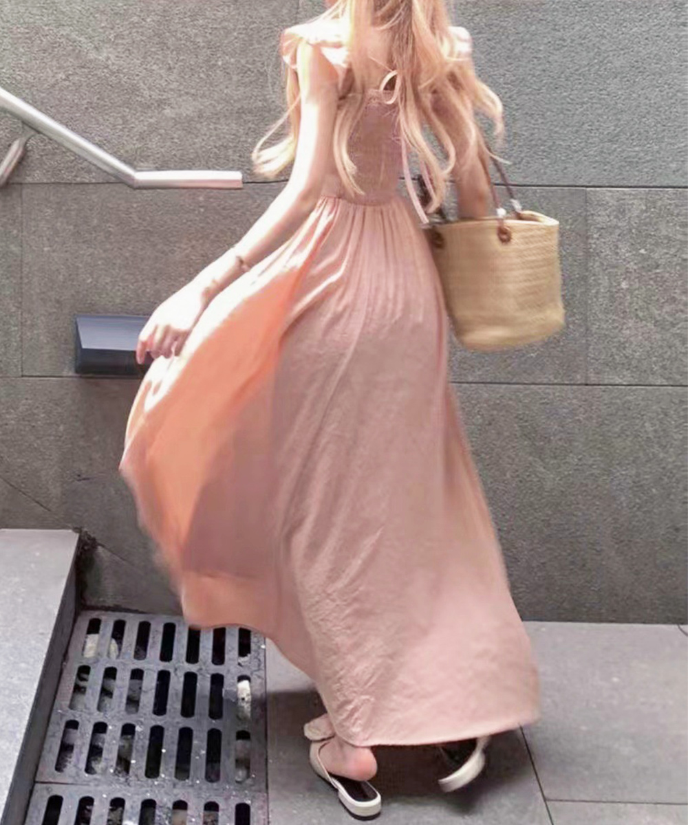 夏のお出かけやデートシーンにぴったりで、サンダルと合わせればエレガントなコーディネートが完成。