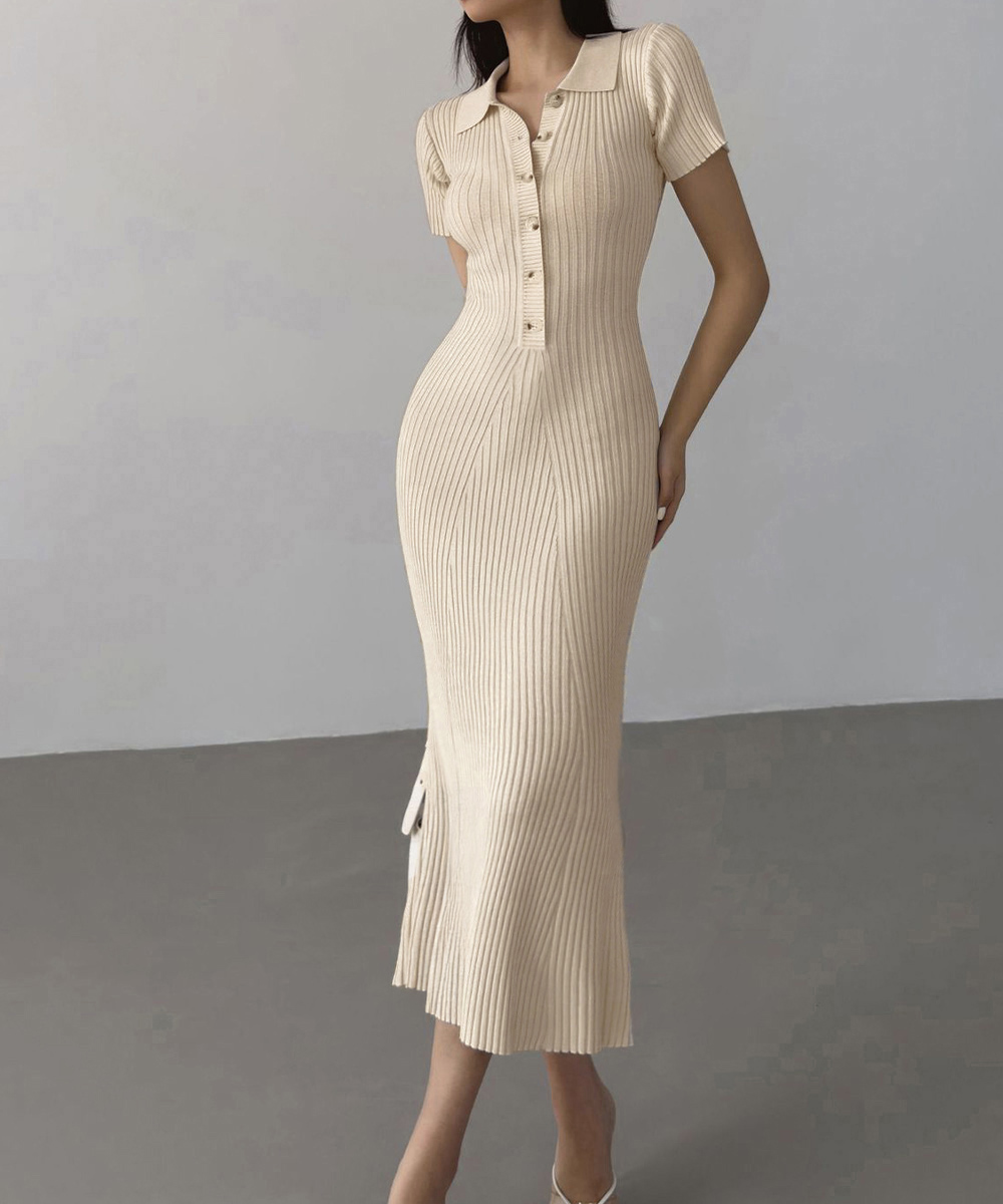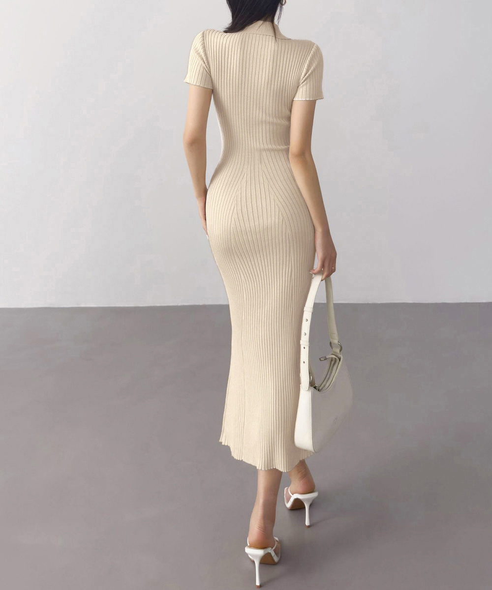 フィット感がありながら、ロングワンピースらしい優雅な丈感を実現。