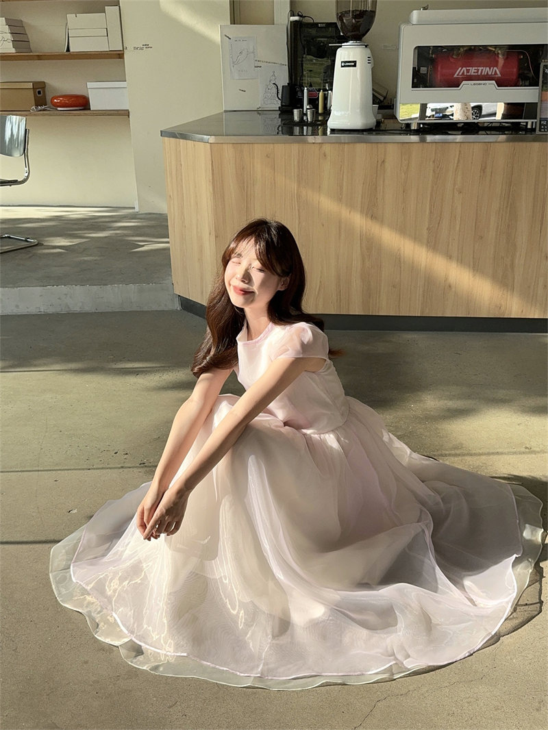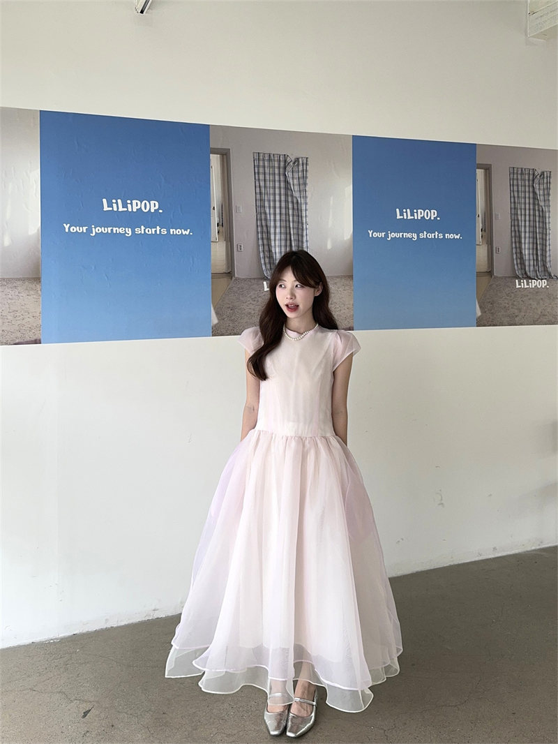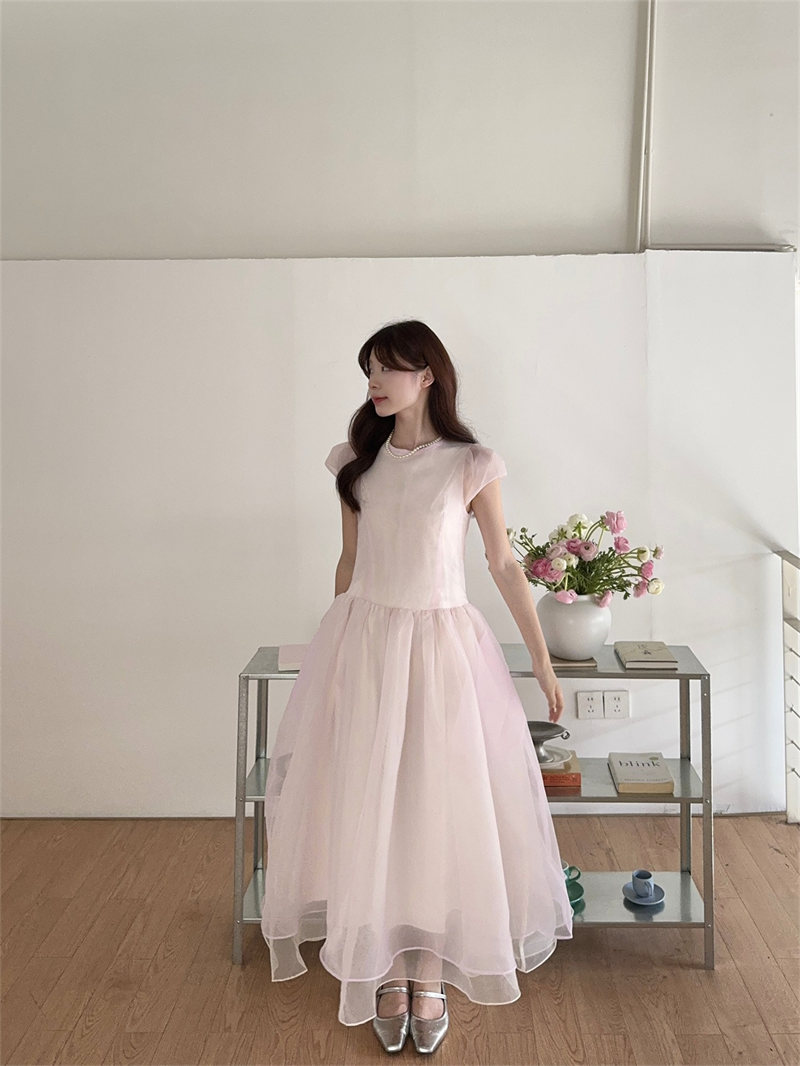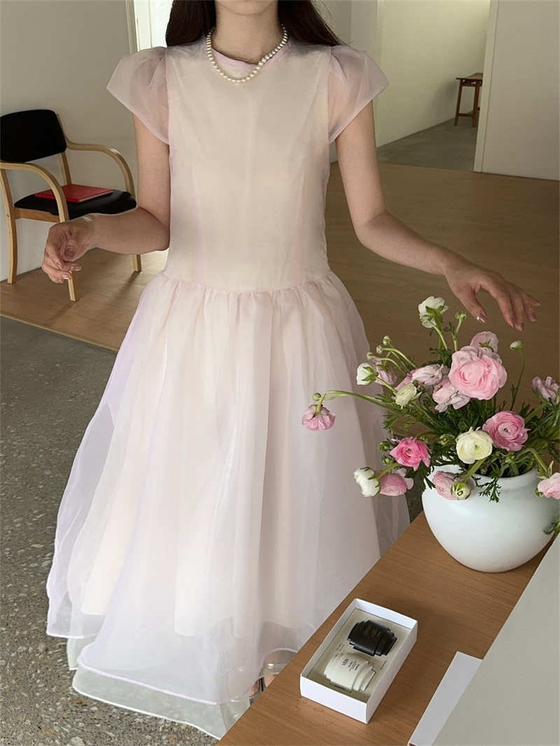 上品な透け感のある袖が魅力的な韓国風ノースリーブワンピースです。