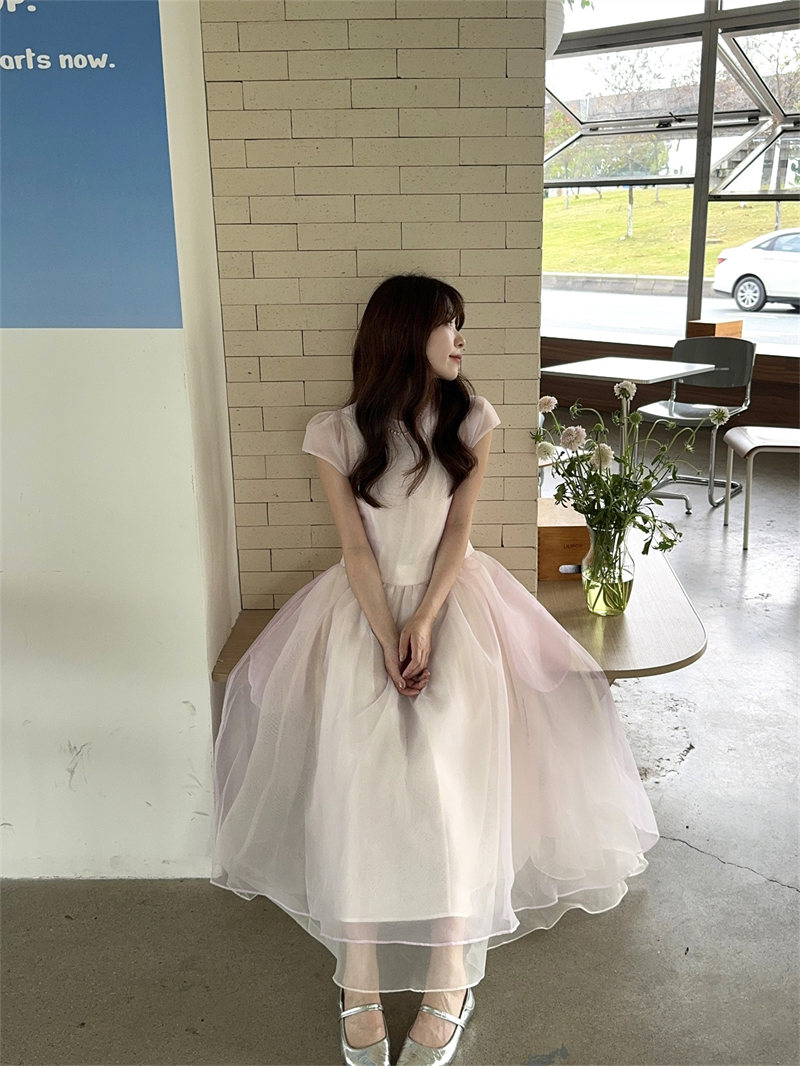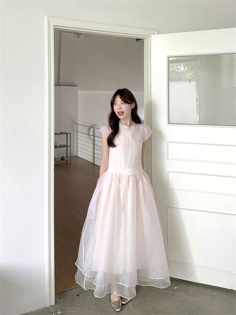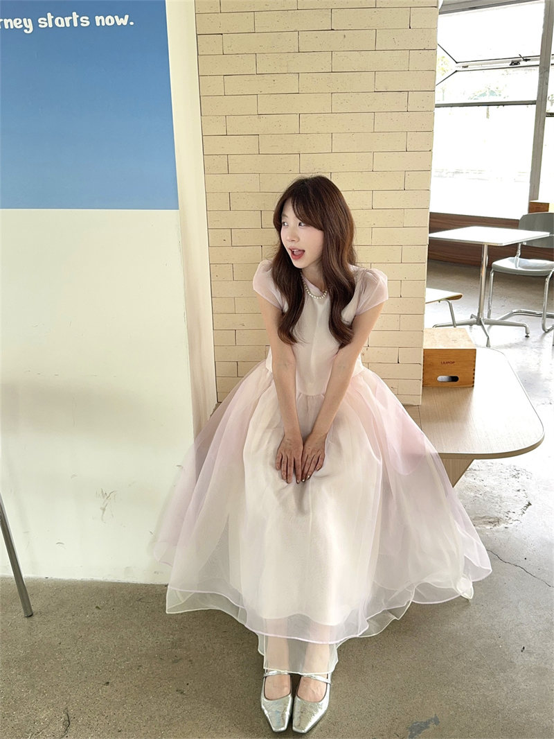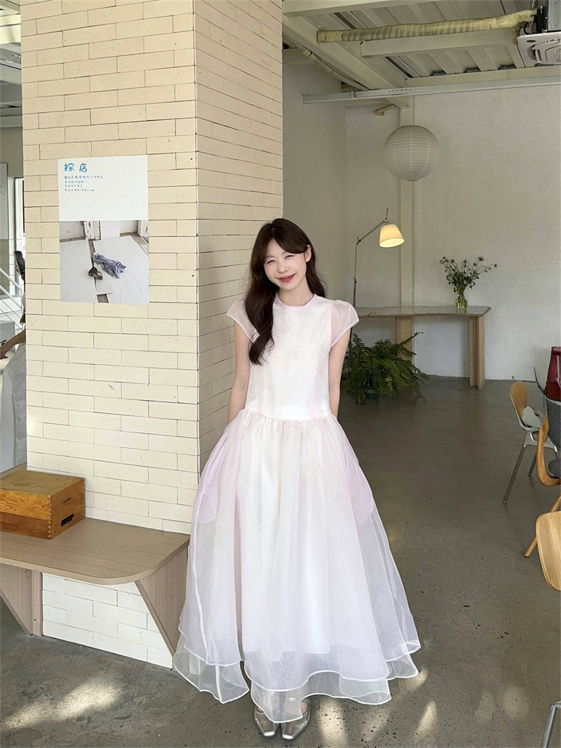 上品な透け感のある袖が魅力的な韓国風ノースリーブワンピースです。