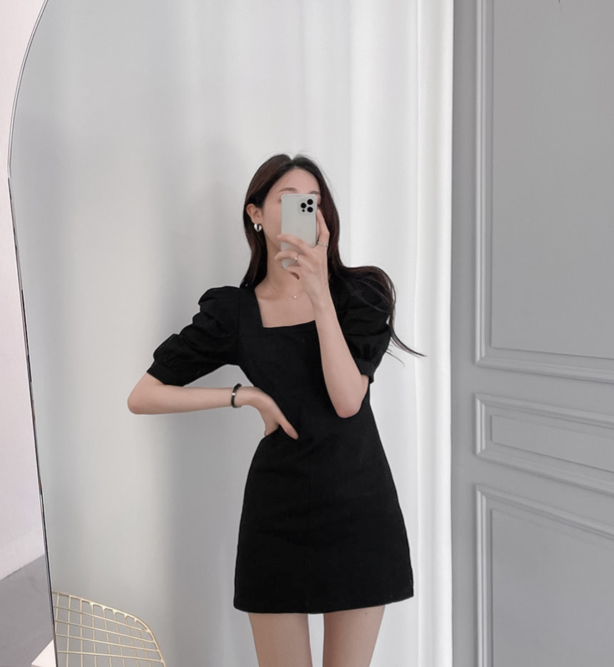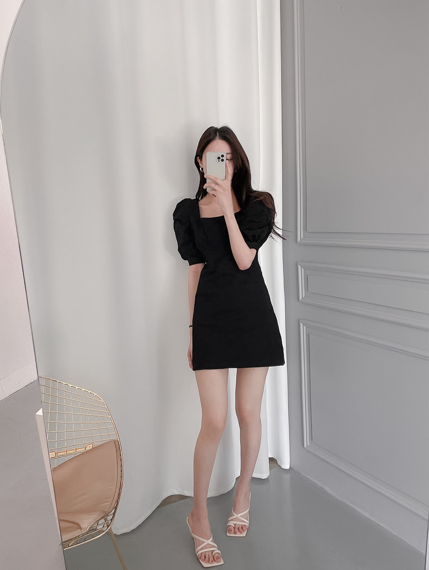 上品なスクエアネックラインと程よいボリューム感の袖が女性らしさを演出します。