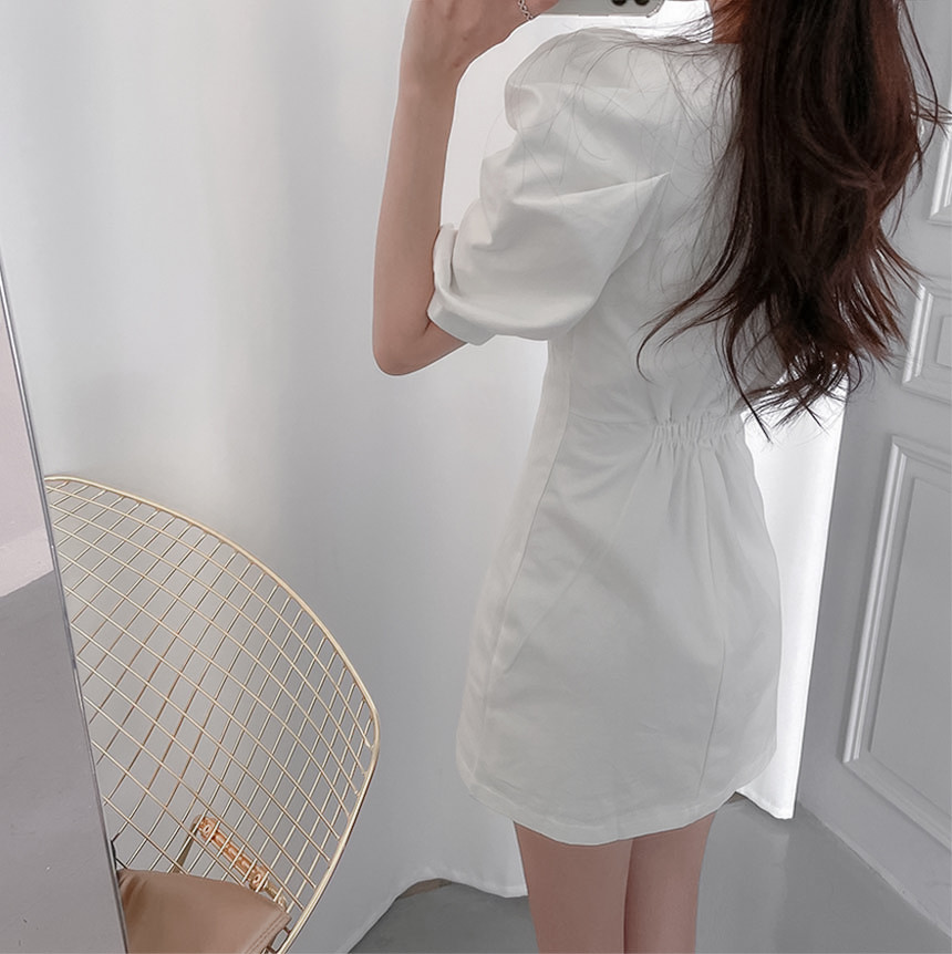 今季注目の韓国風デザインが魅力的なパフスリーブシャツワンピースです。