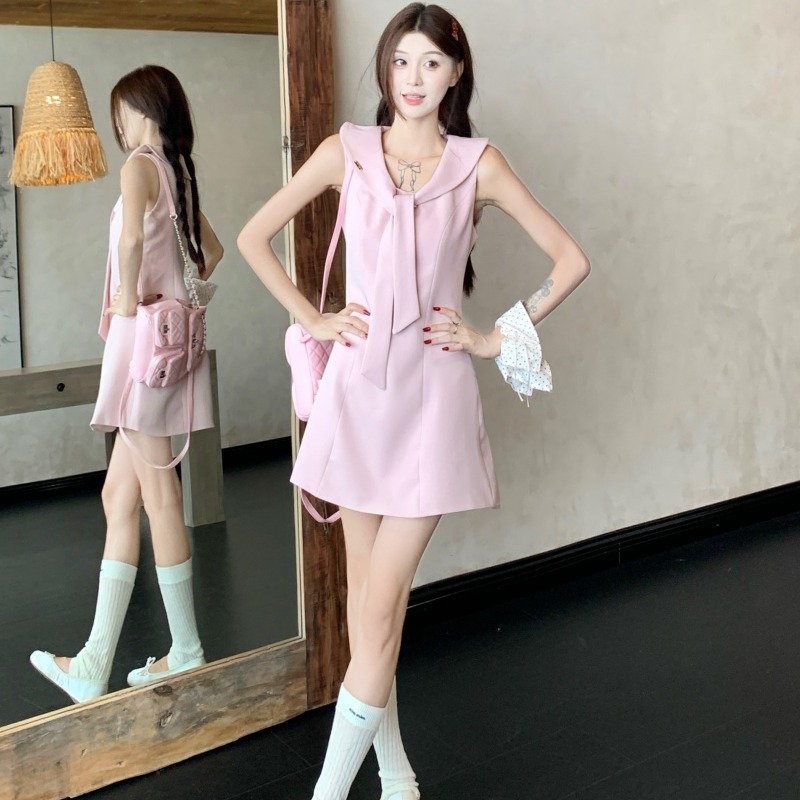 今年注目の韓国風デザインが魅力的なノースリーブワンピースです。