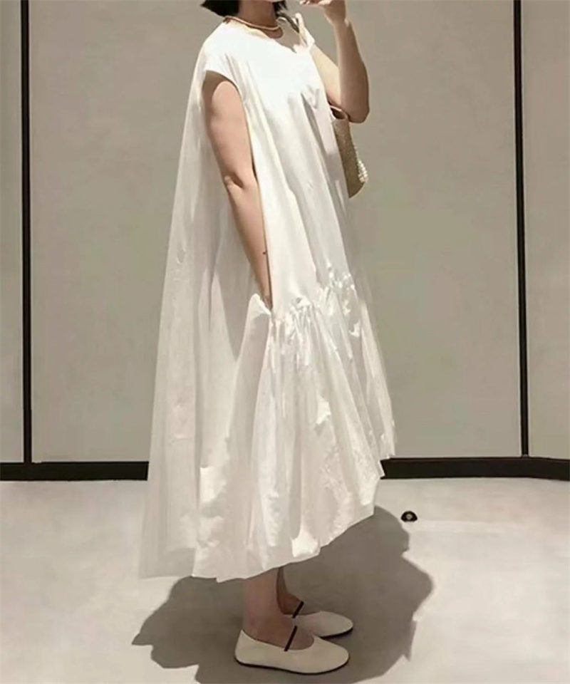 快適な着心地を追求したノースリーブのロングワンピースです。