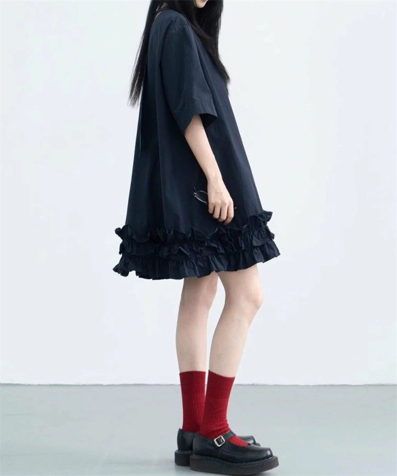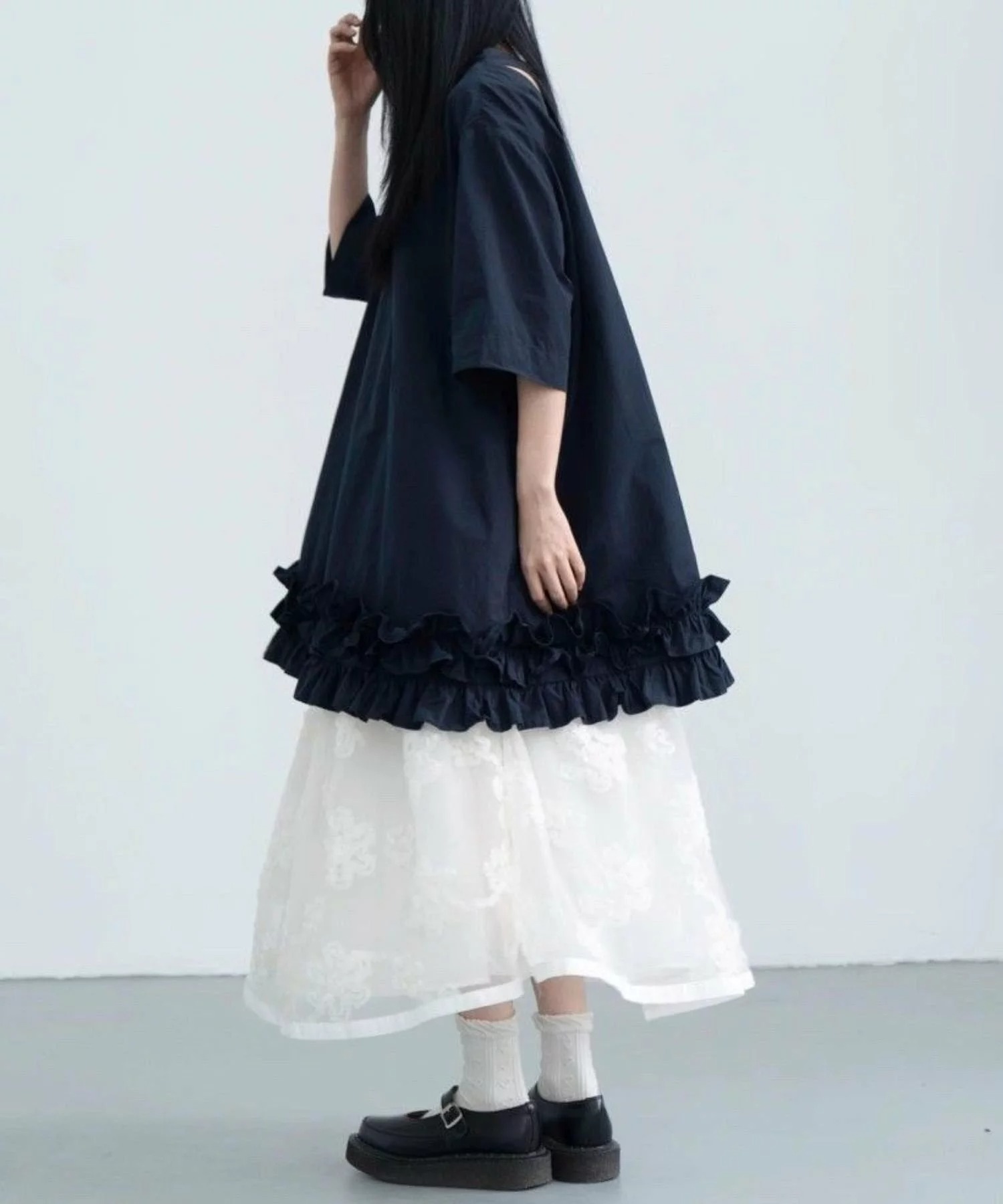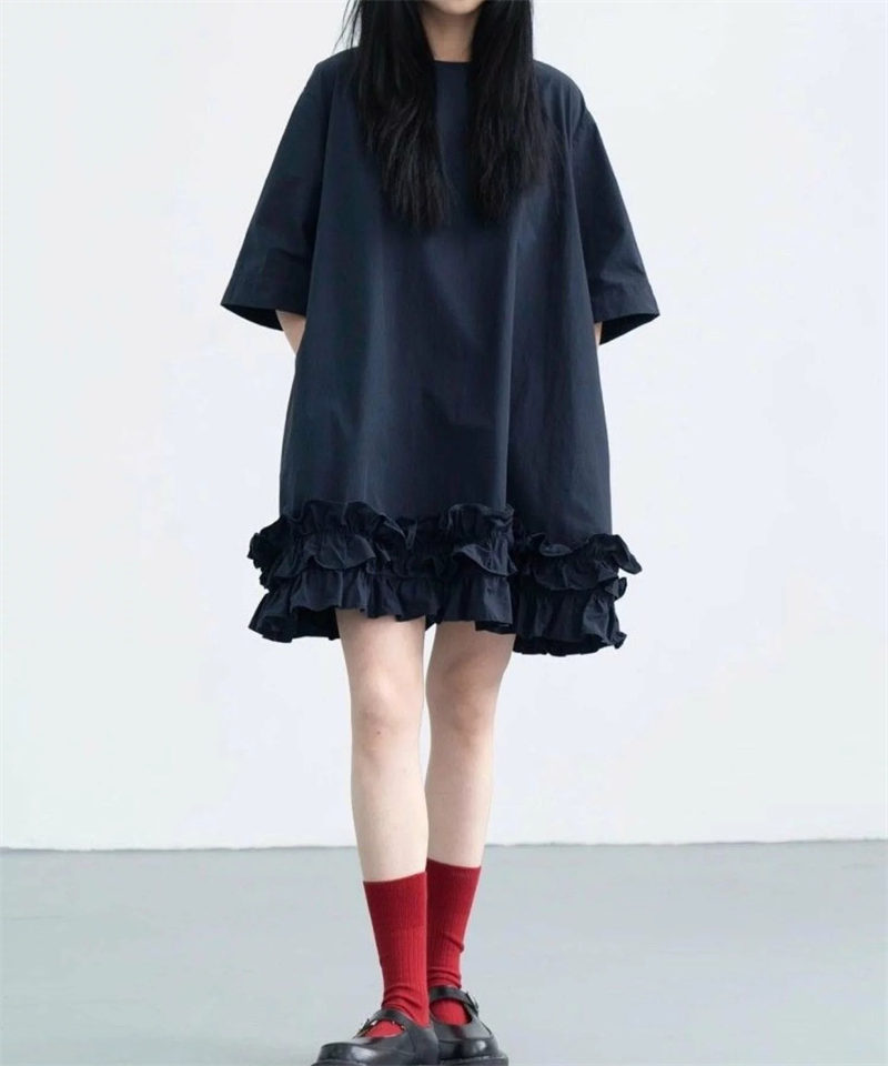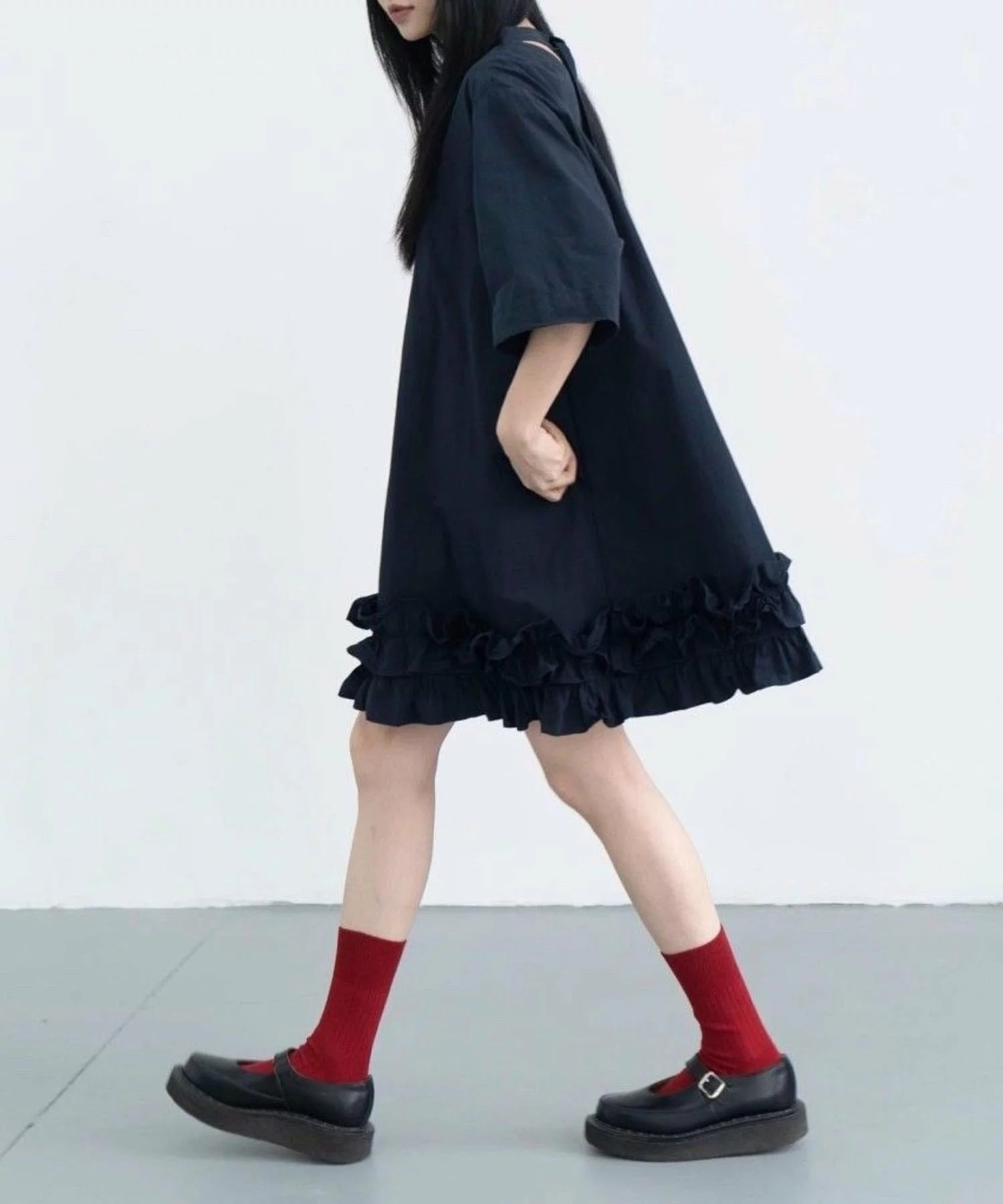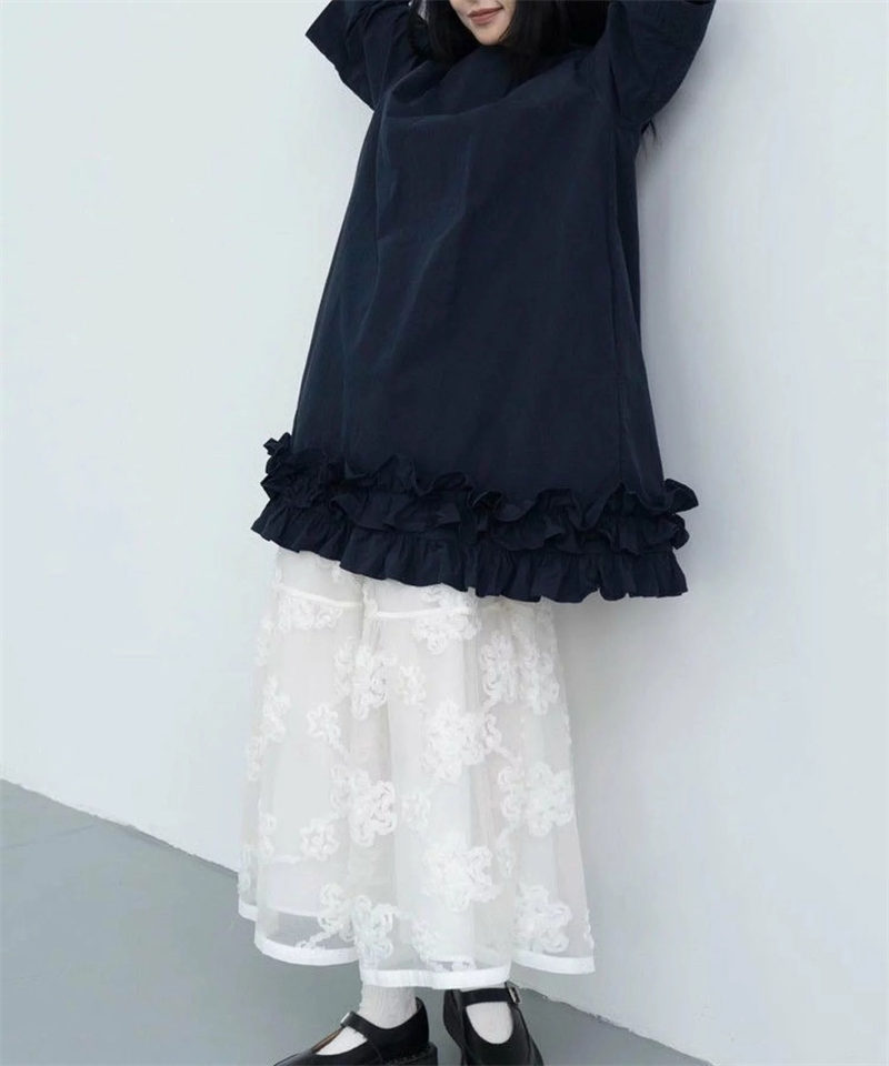 裾フリルが上品な印象を演出し、どんなシーンにも合わせやすいアイテムです。