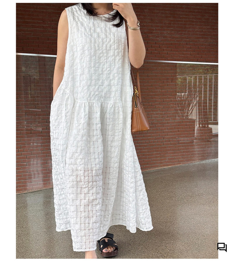 快適な着心地を追求した伸縮性のある素材を使用したノースリーブのロングワンピース。