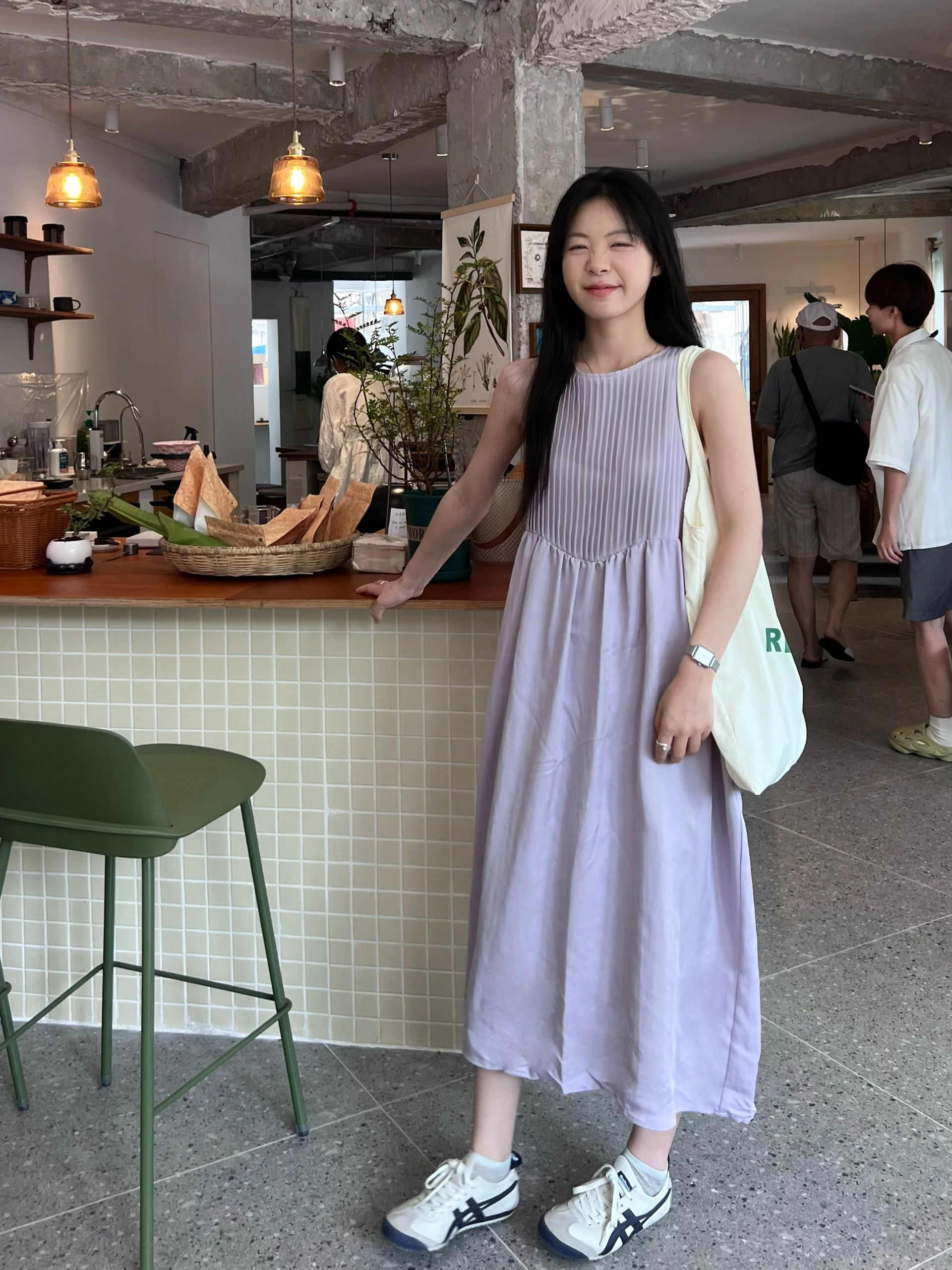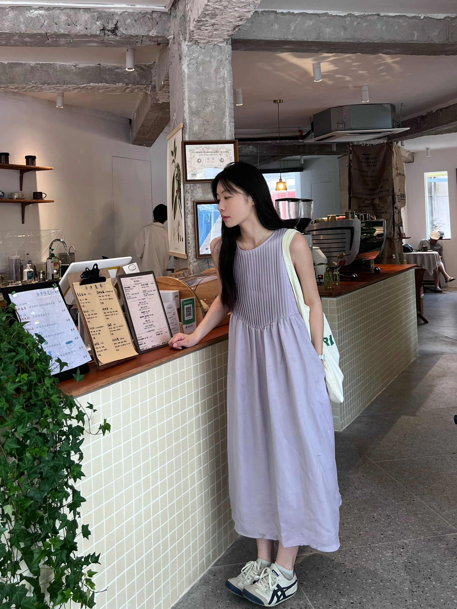 今年の夏新作として登場した韓国風のかわいいノースリーブロングワンピース。
