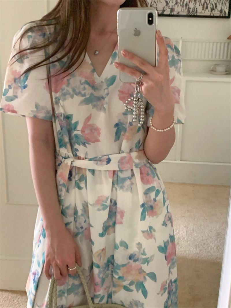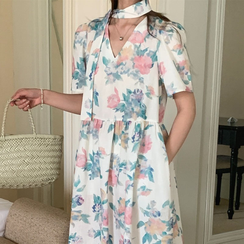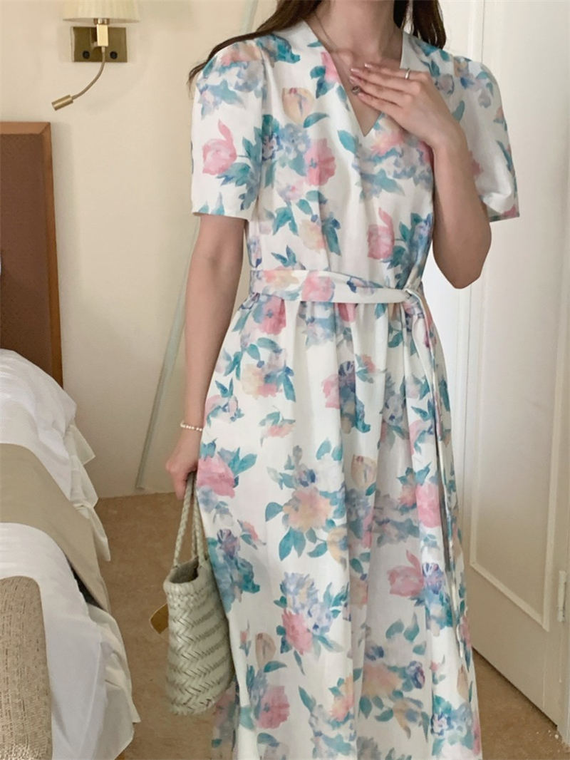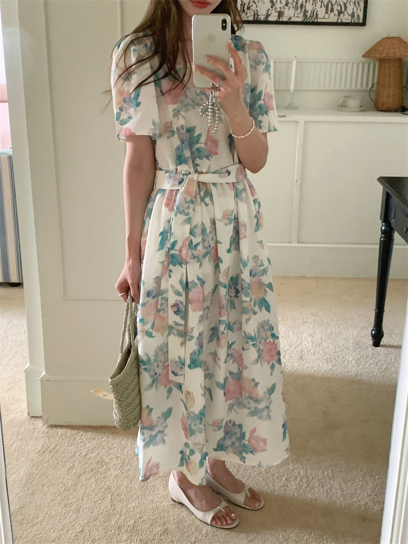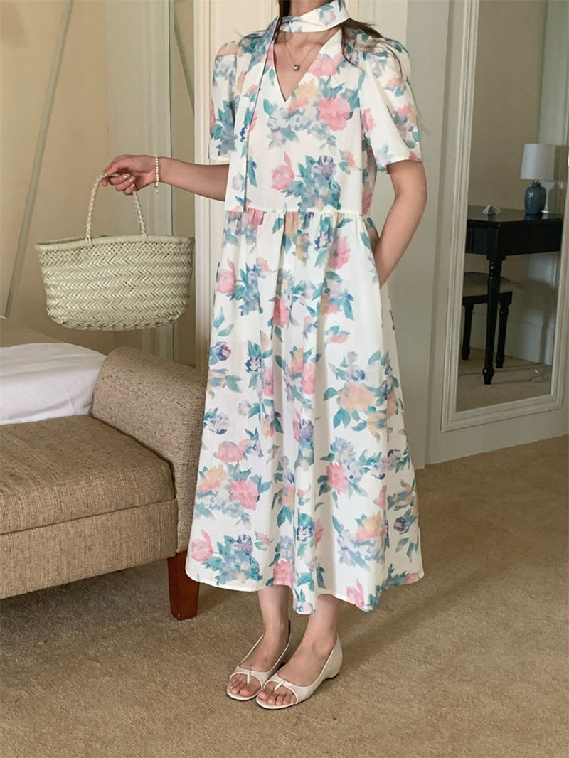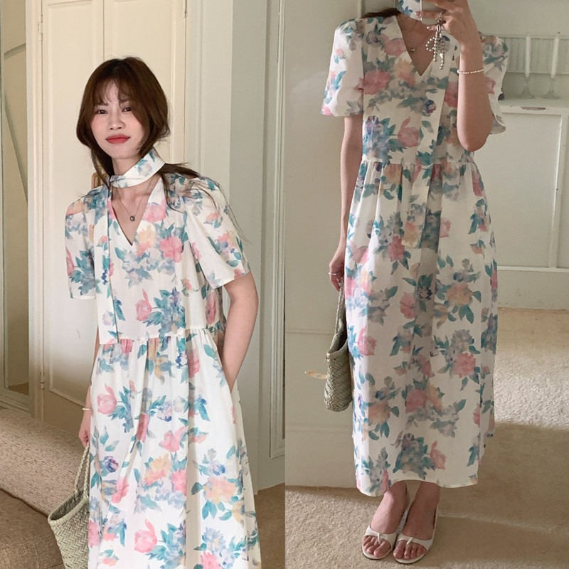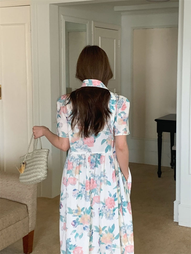 上品な花柄が美しいシャツタイプのロングワンピース。
