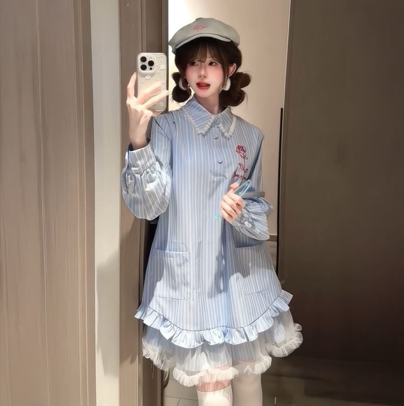 体重に応じたサイズ展開で快適な着心地を実現したロングワンピース仕様のシャツです。