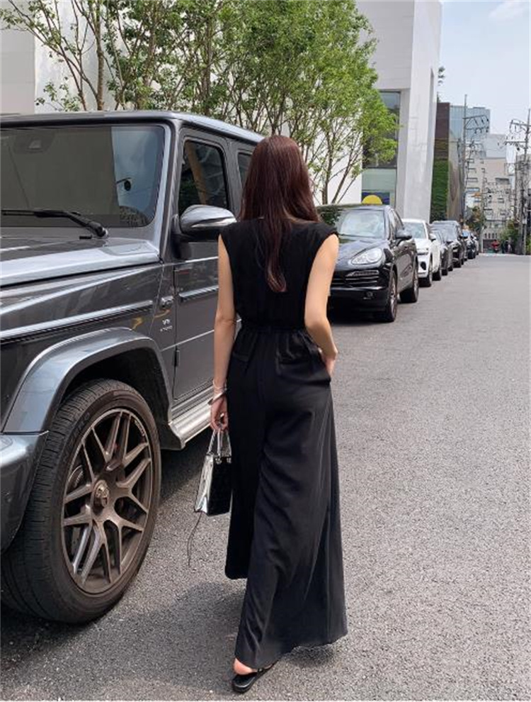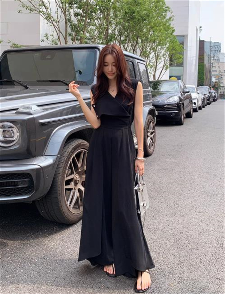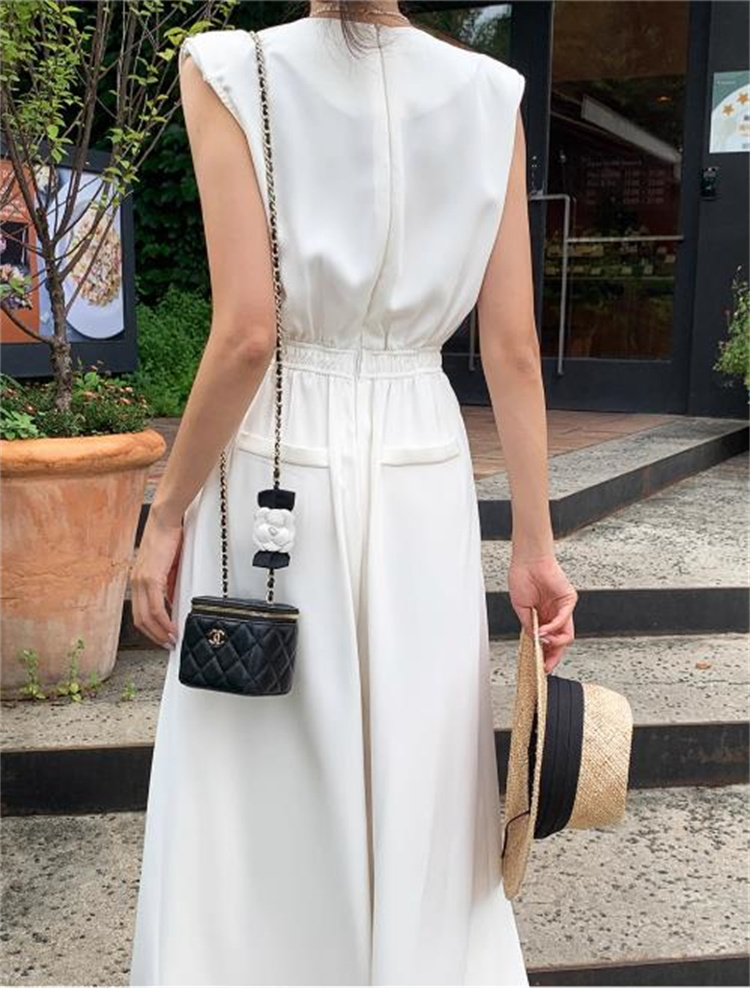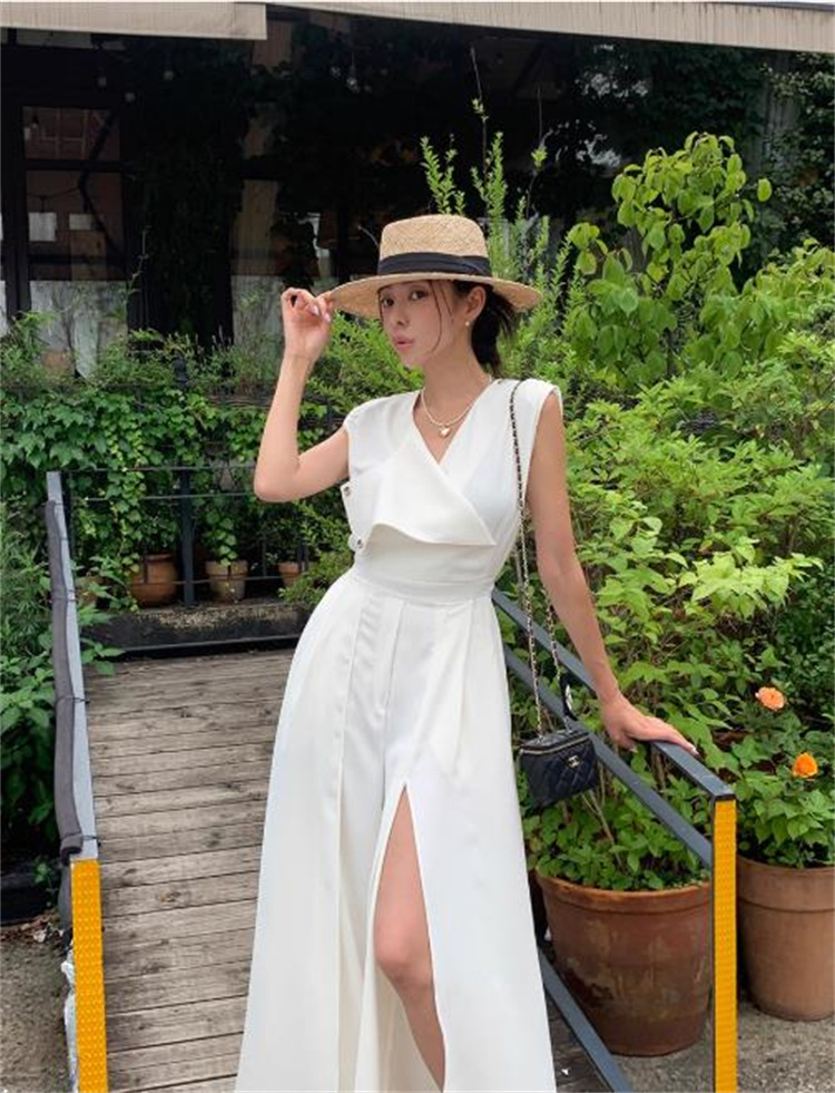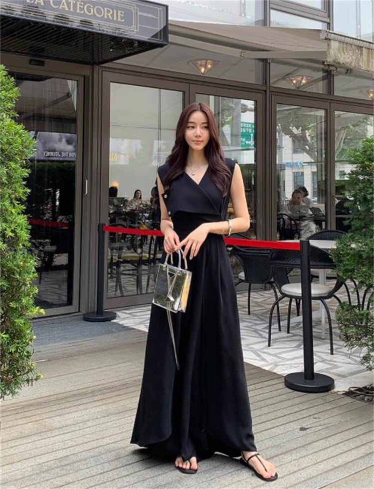 夏にぴったりなブイネックノースリーブのロングワンピース。