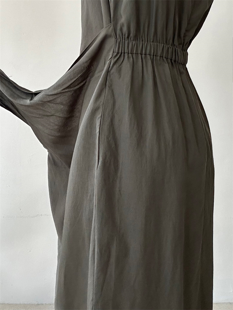 2025年夏の注目トレンド、結び目デザインが美しいノースリーブのロングワンピース。 ウエスト部分の結び目がシルエットを強調し、女性らしい曲線を演出します。 素材はポリエステルとコットンの混合で着心地抜群。 カラーは上品な黒と茶色をご用意しております。