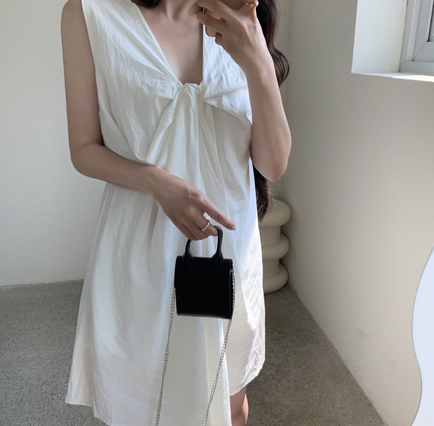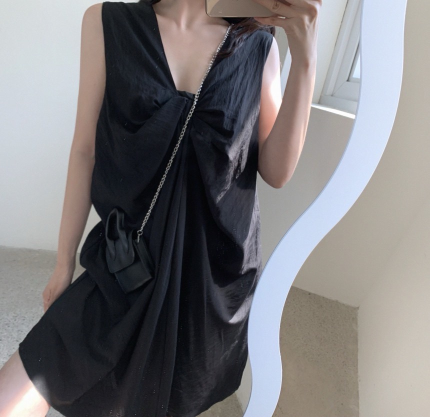 胸元のねじりデザインが個性的で上品な印象を演出します。