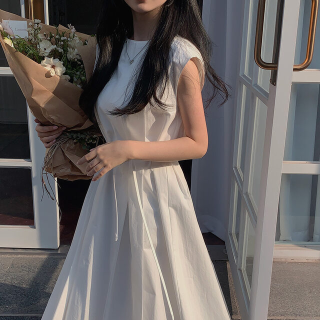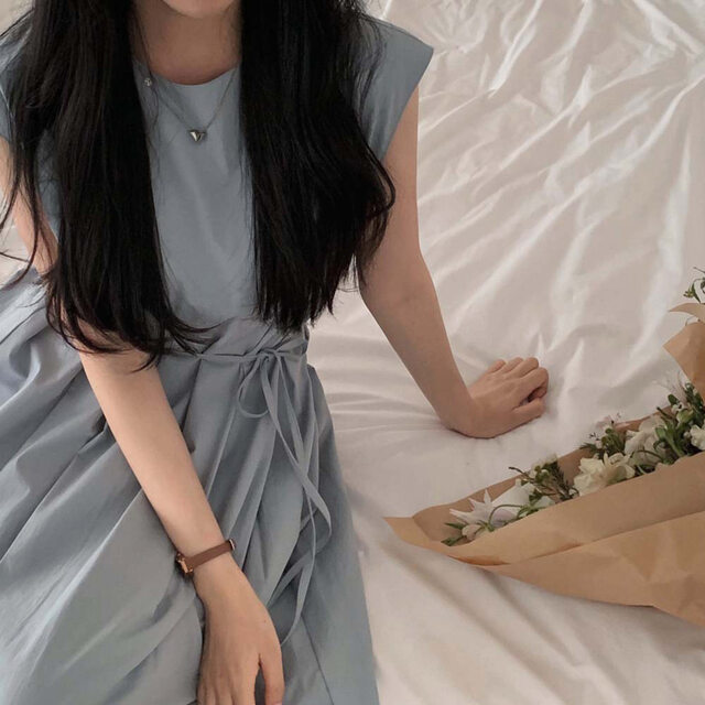 上品なリボンベルトでウエストマークができ、feminine silhouette シルエットが美しいロングワンピース。