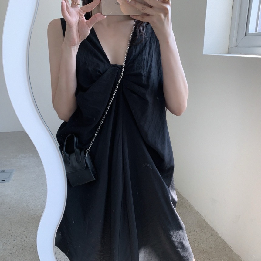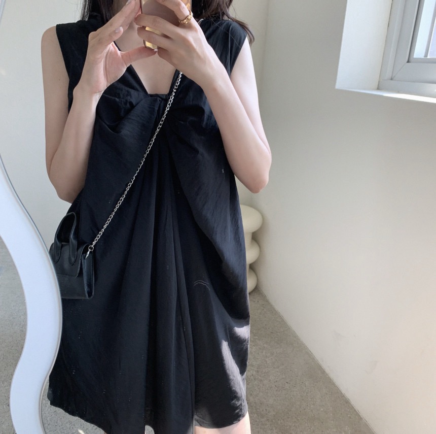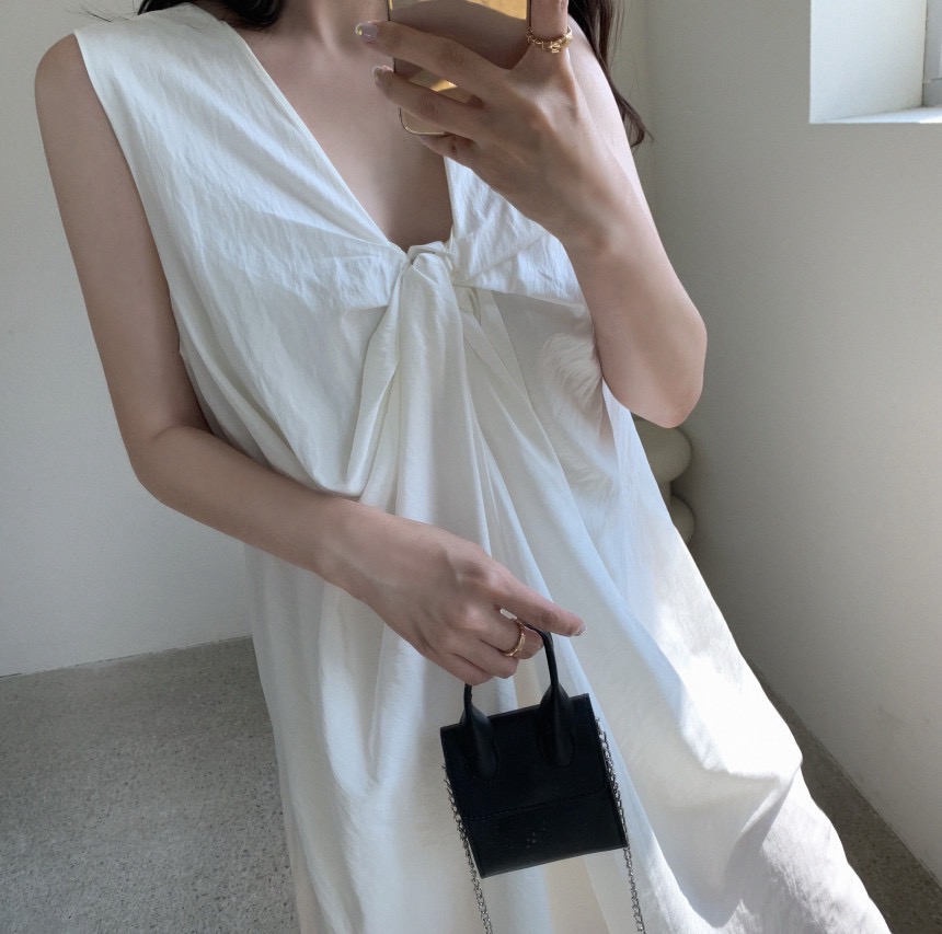 ポリエステル100%で作られた軽やかで快適な着心地のノースリーブロングワンピースです。