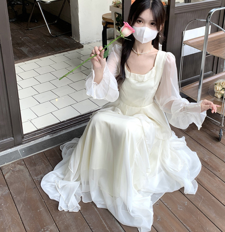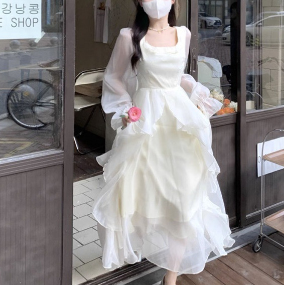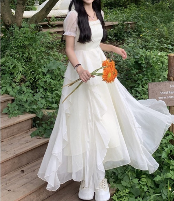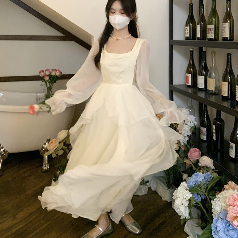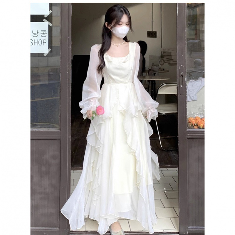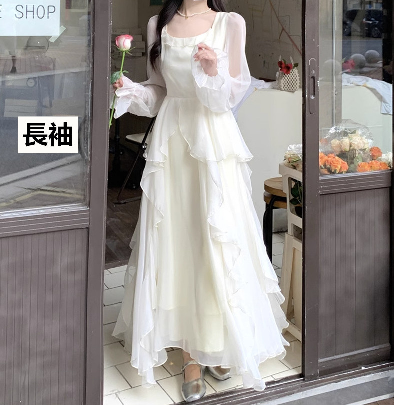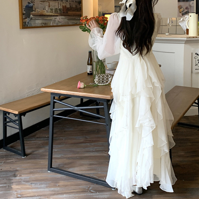 ふんわりエアリーなシフォン素材のロングワンピース。