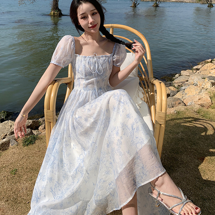 花柄デザインのマキシ丈で、袖と裾の透け感が気分も涼しく体型カバーも叶います。