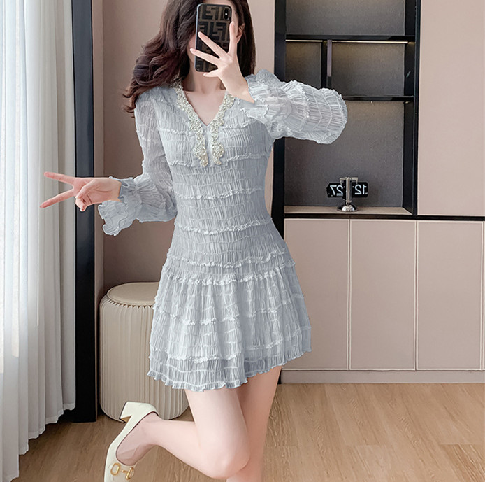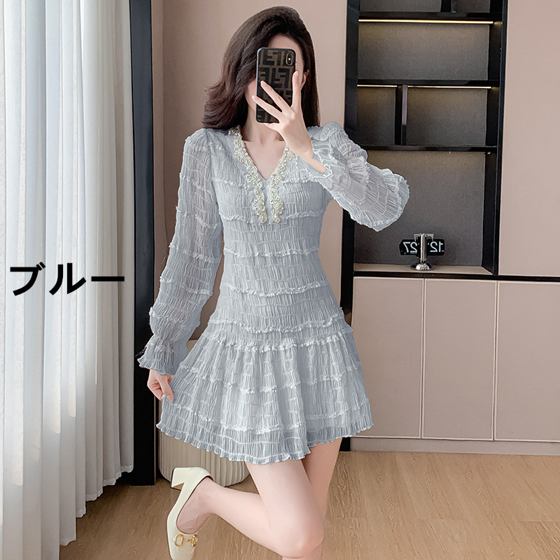全体に施されたフリルデザインが上品で可愛らしい印象を演出。