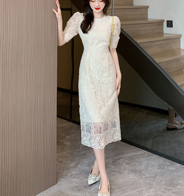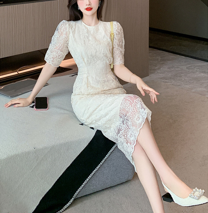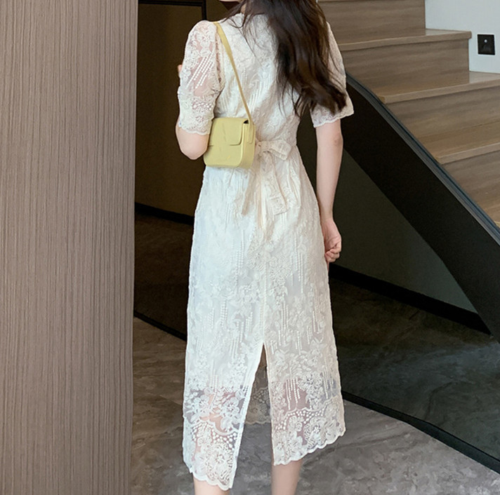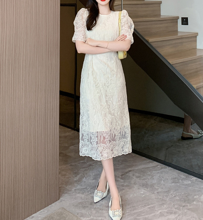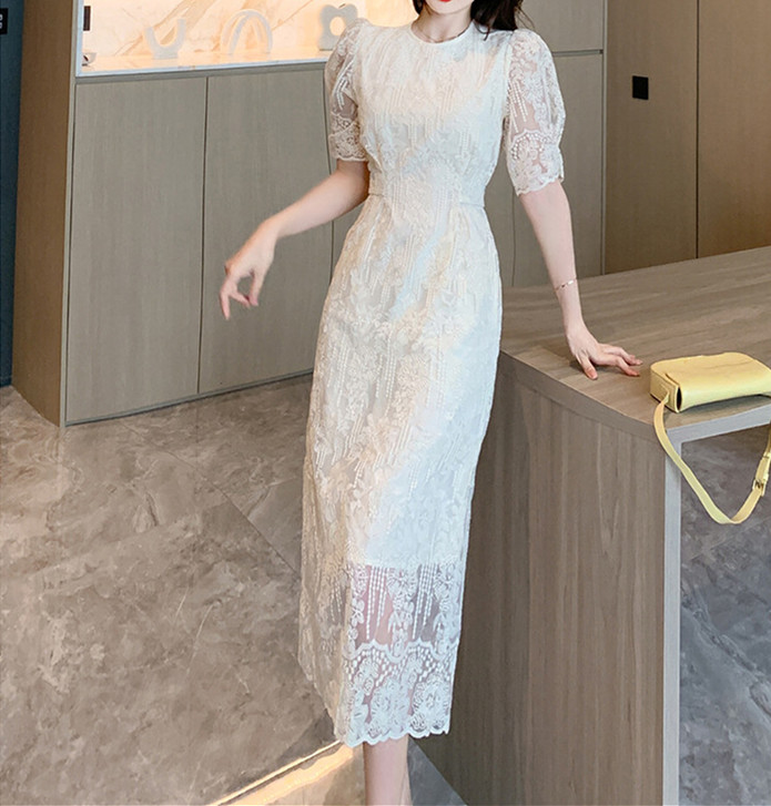美しいレース素材で仕立てた、一枚でも着映えするロングワンピース。