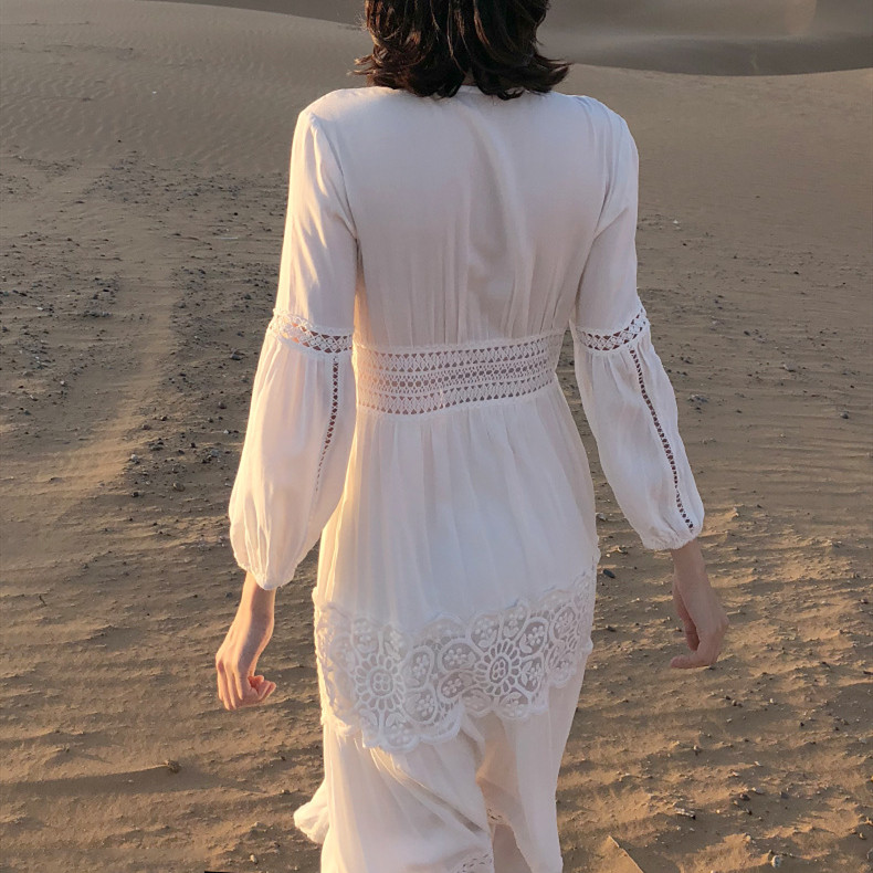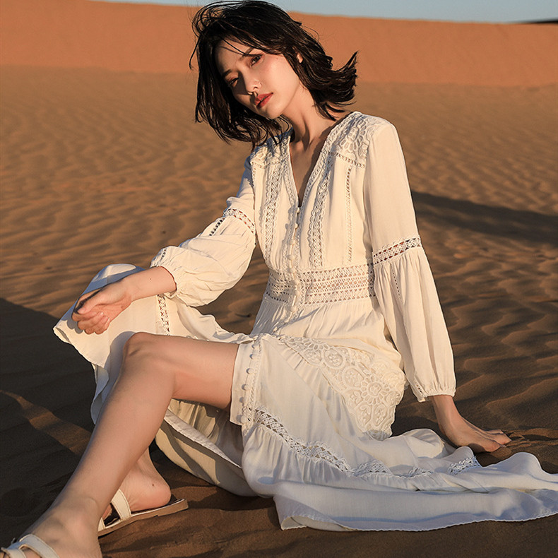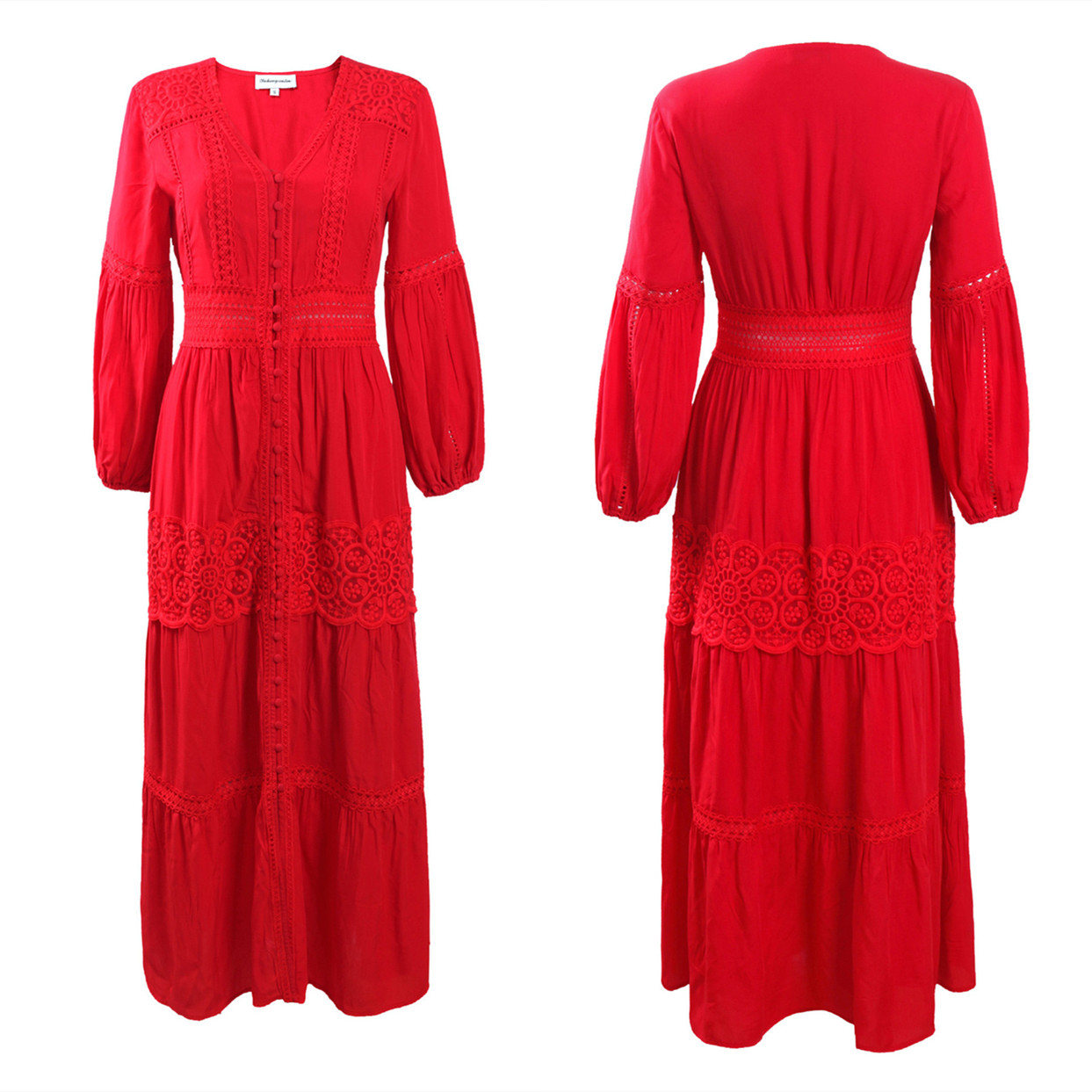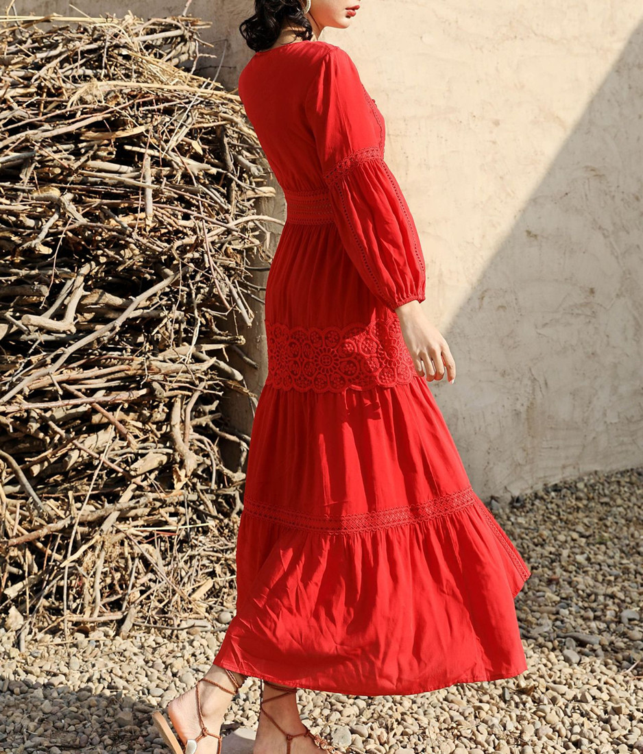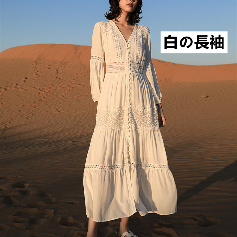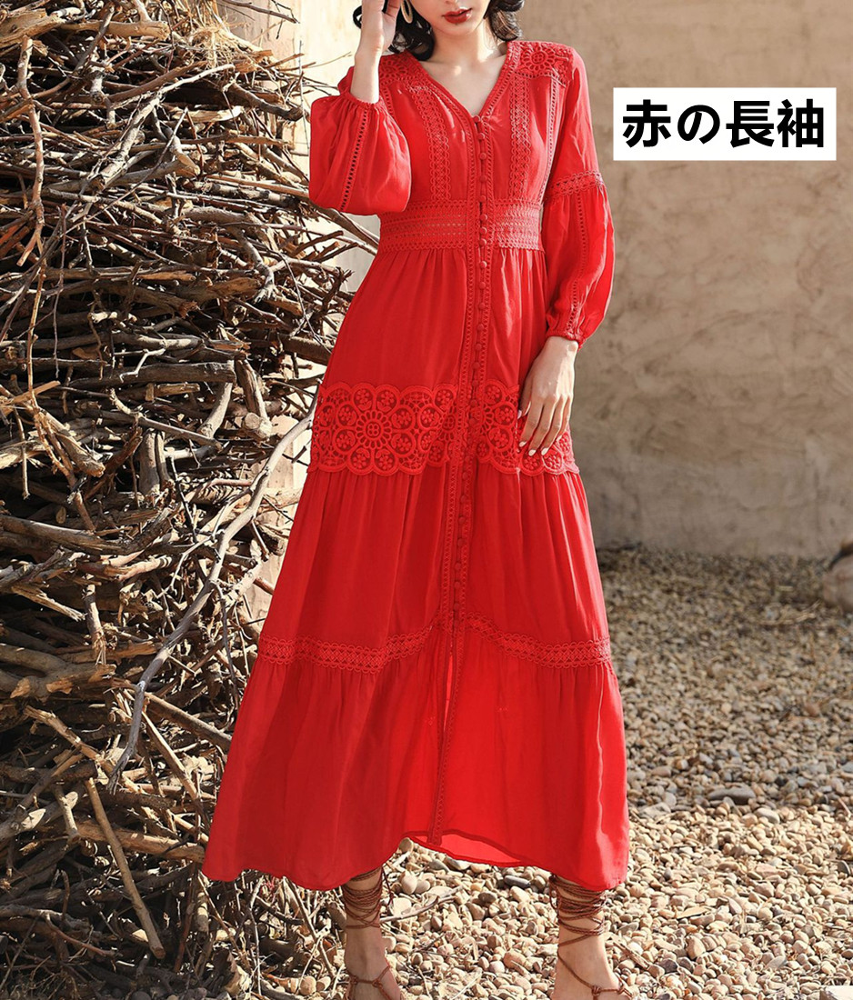 ボヘミアン風が溢れる美しいフレアシルエットのロングワンピースです。