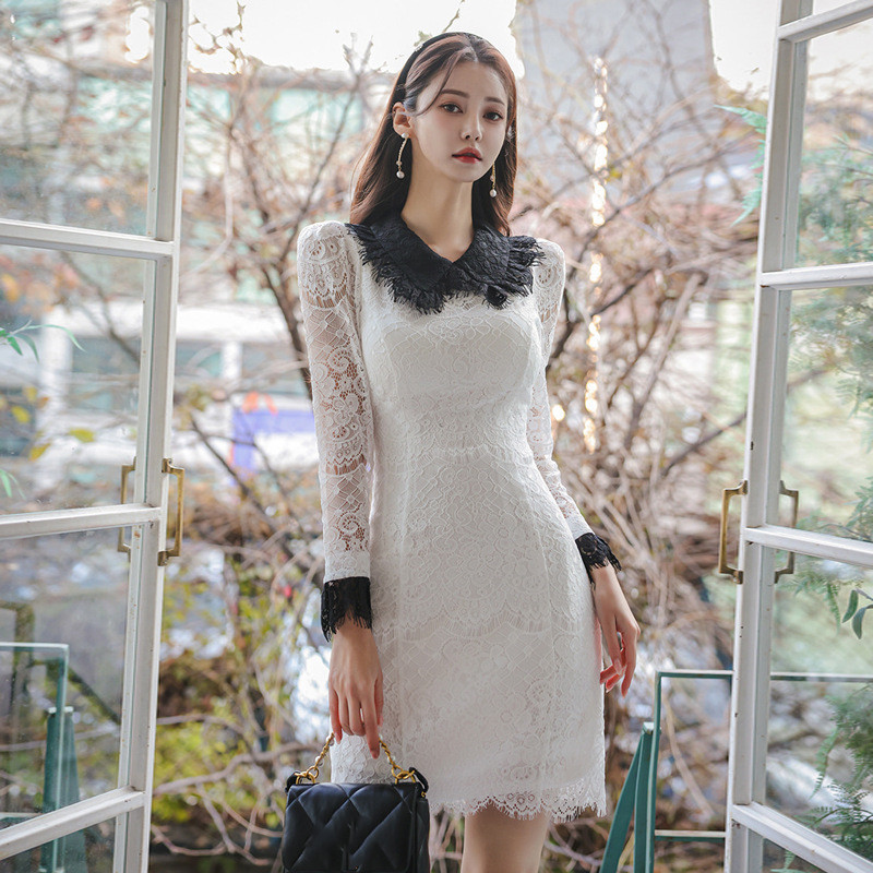黒の丸襟がアクセントとなり、エレガントな印象を与えます。