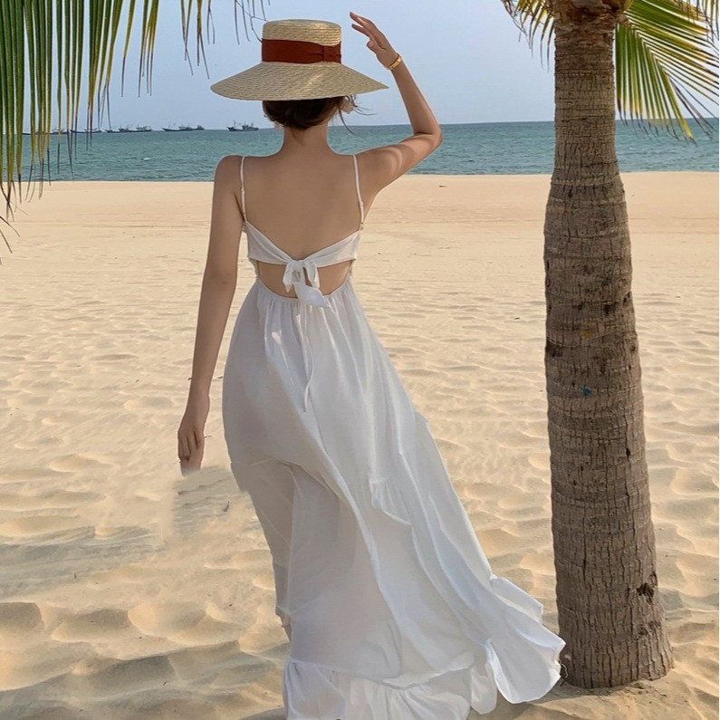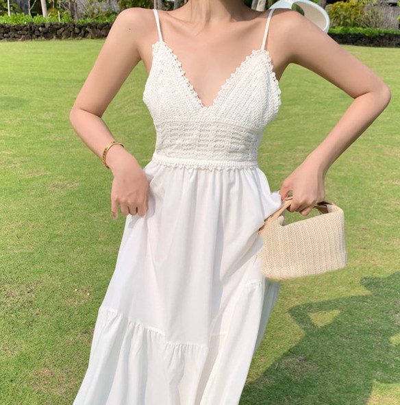 優雅なロングワンピースで女性らしいキャミデザインが魅力的です。