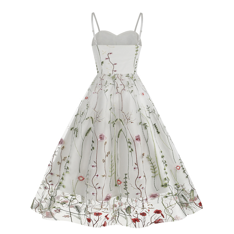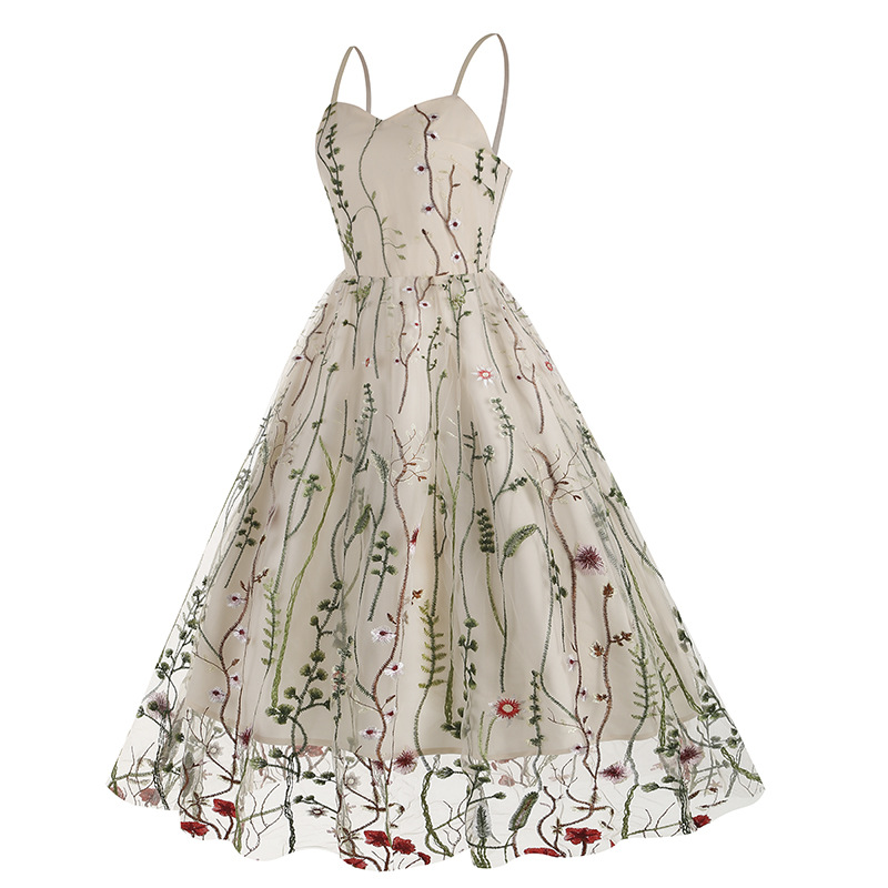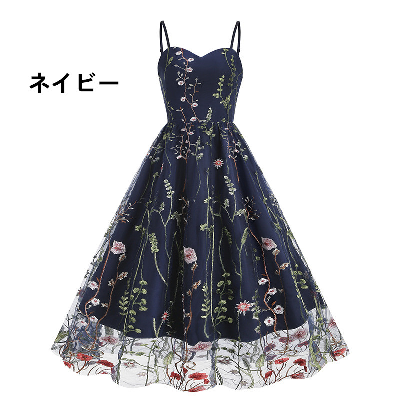 美しい花柄刺繍が施された上品なレース素材のロングワンピースです。
