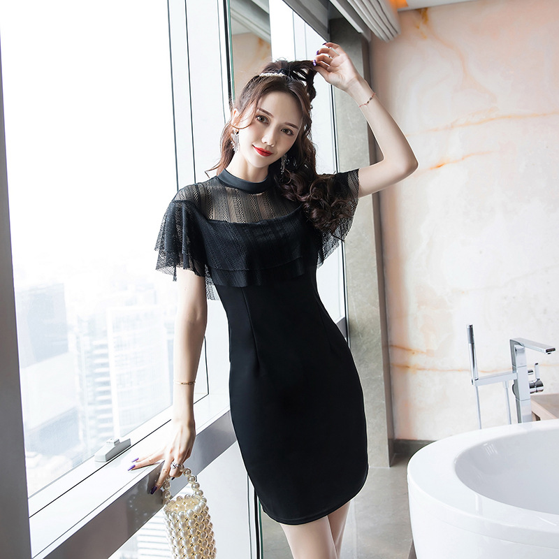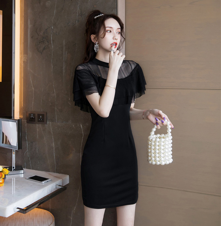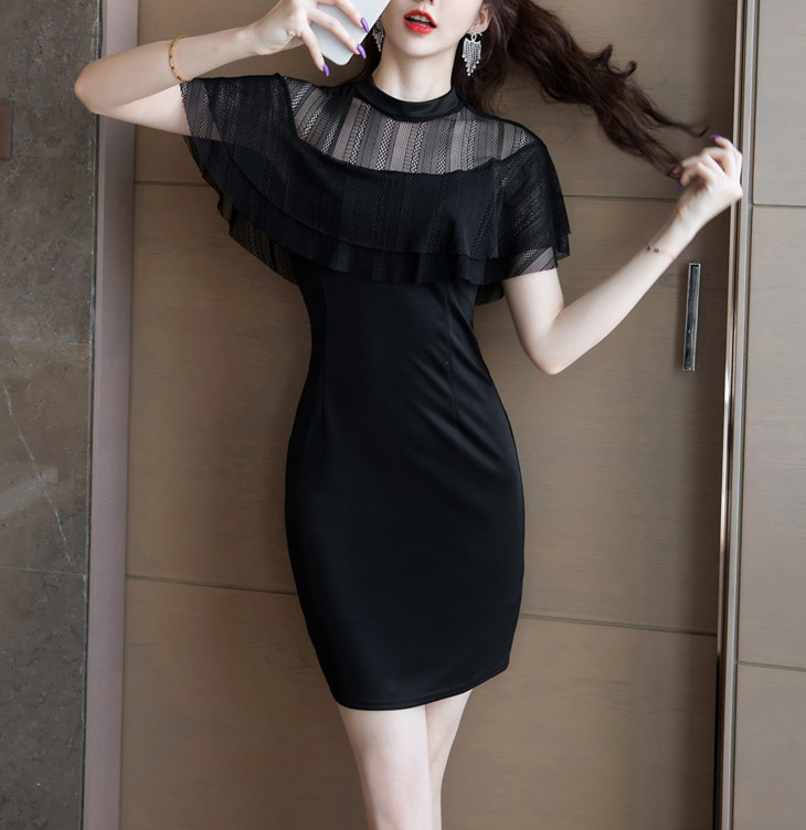 デコルテ周りのチュールレースが大人可愛いタイトなハイウエストワンピースです。