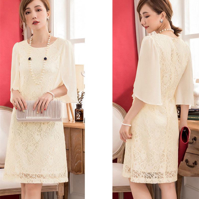 上品な総レース仕様のフォーマルドレス。柔らかく肌触りの良い生地でオールシーズン快適に着用可能です。