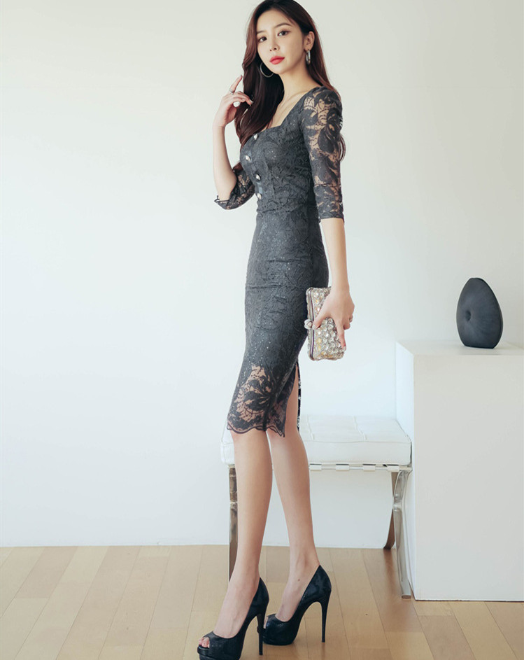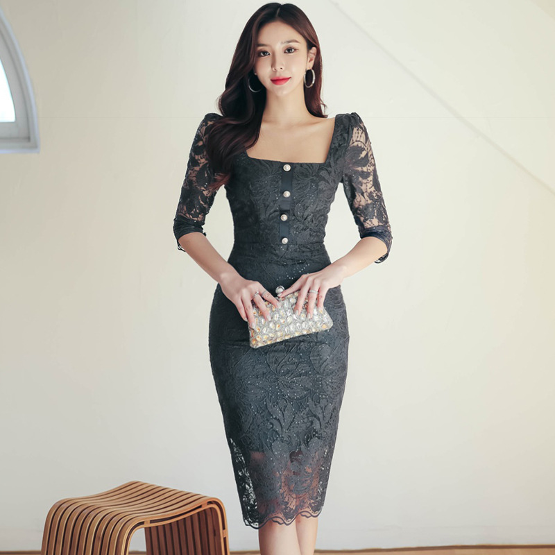 上品なレース素材とシンプルなデザインが美しく調和したフォーマルドレス♪
