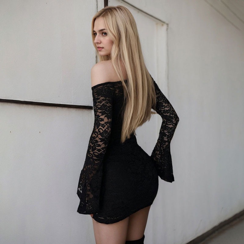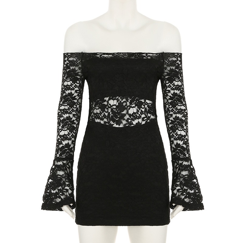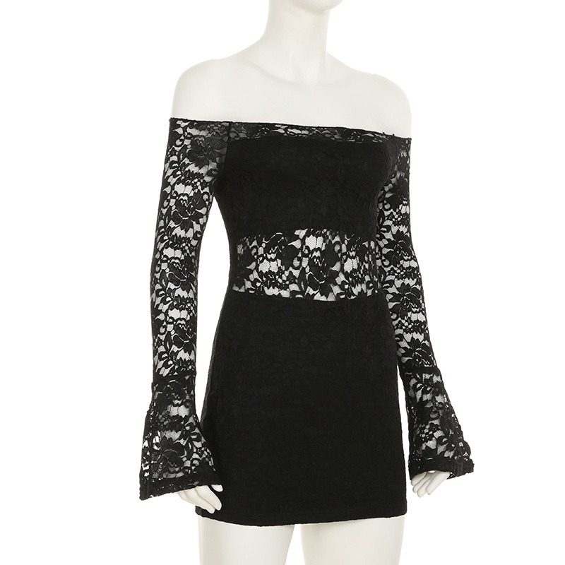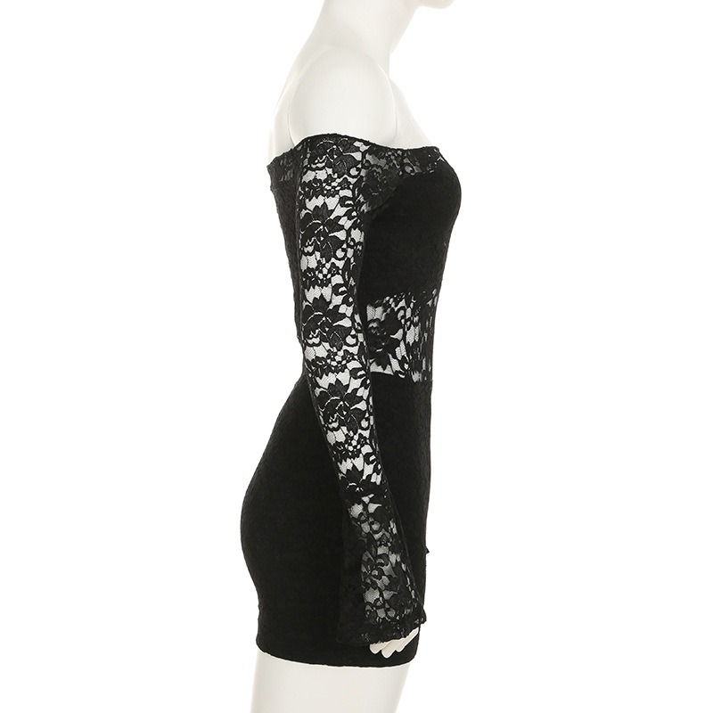 この商品は国内倉庫から発送される、肩出しデザインが魅力的な総レース仕様のミニワンピースです。