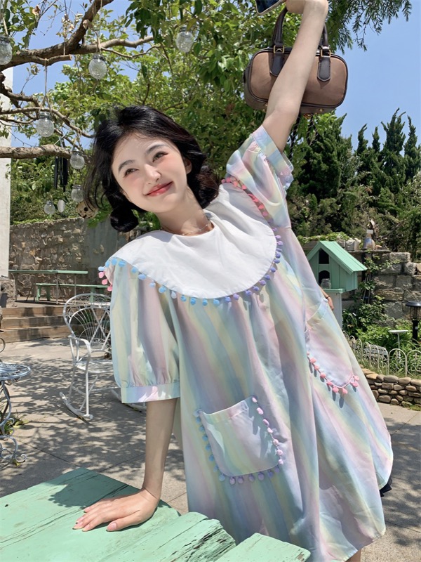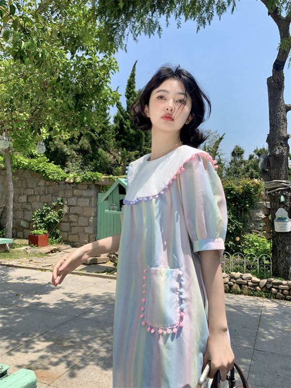 洗練された虹色グラデーションが美しいミニワンピースです。