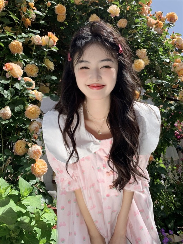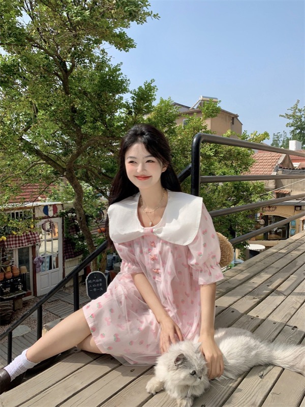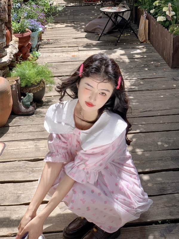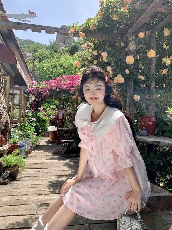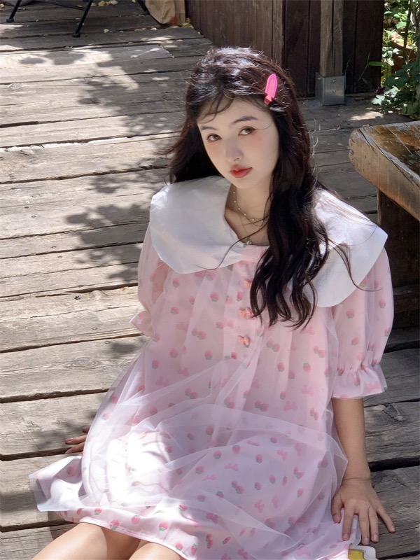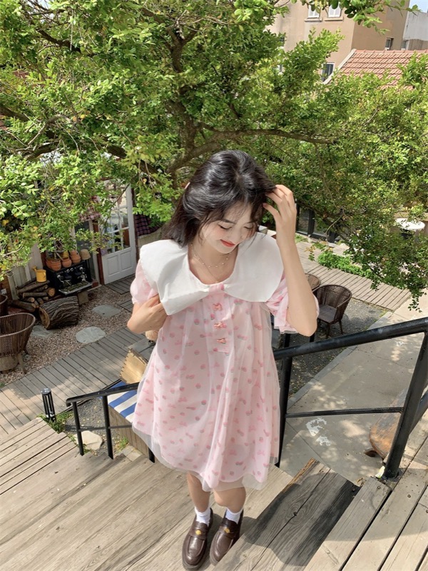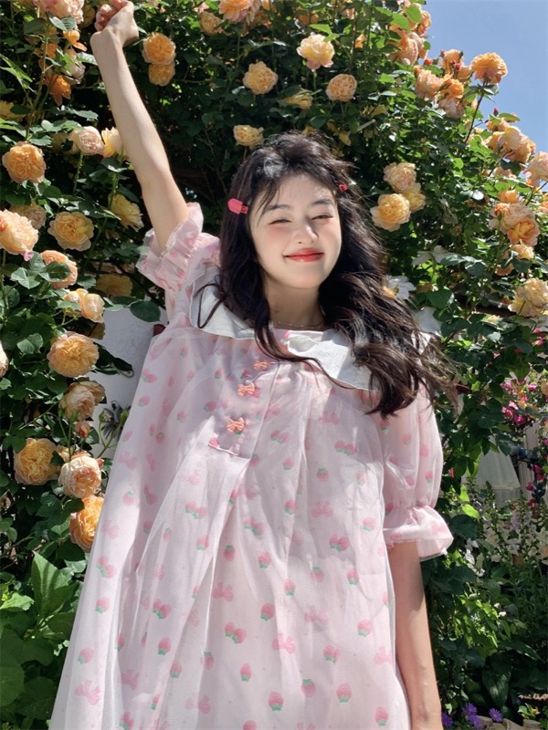 ふんわりとしたパフスリーブとフリルが女性らしさを演出し、