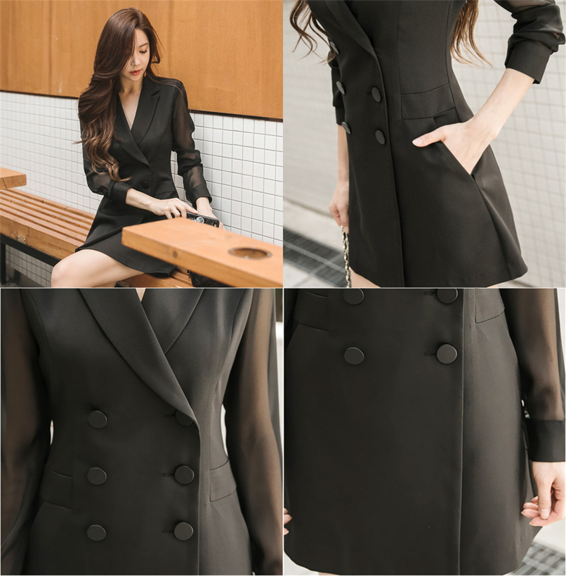 二重襟のテーラードデザインで、通勤からフォーマルシーンまで幅広く活躍します。
