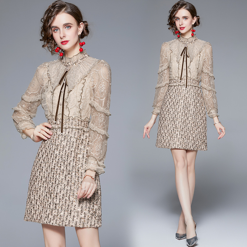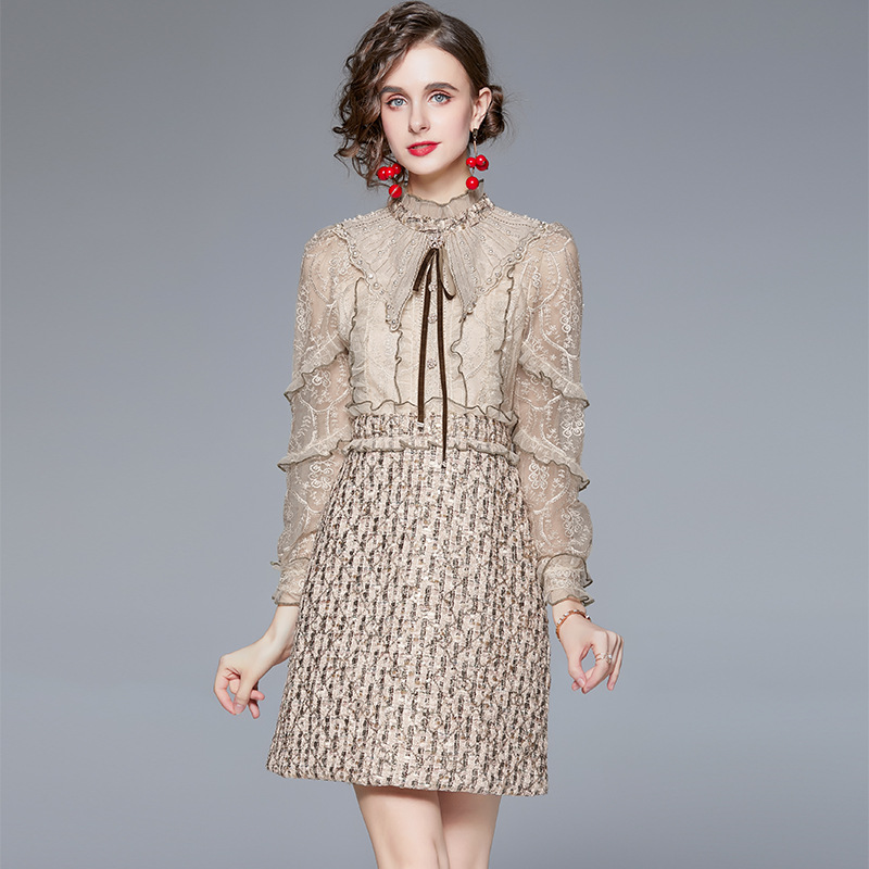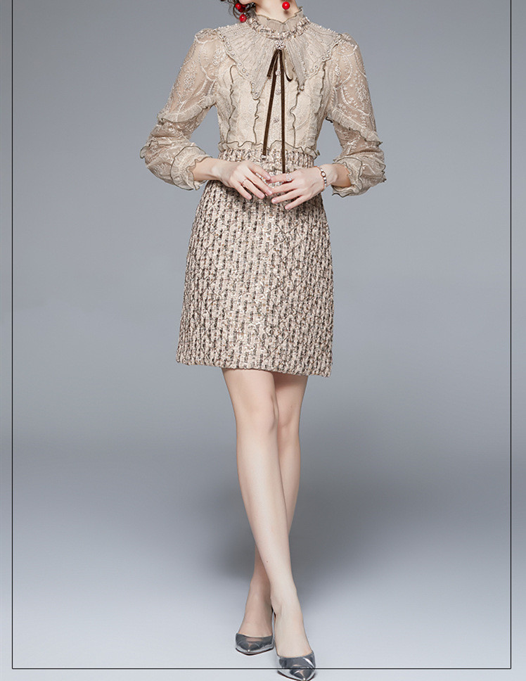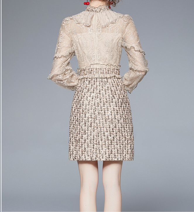 ツイード風の高級感ある素材とロングワンピース仕様で、