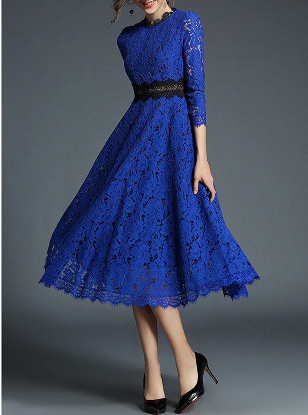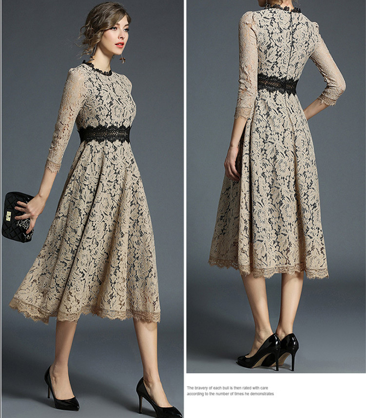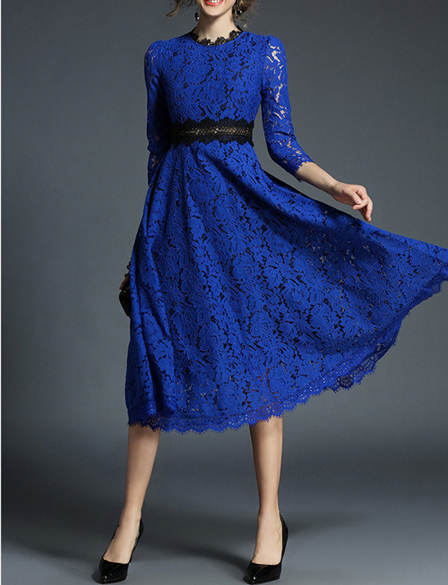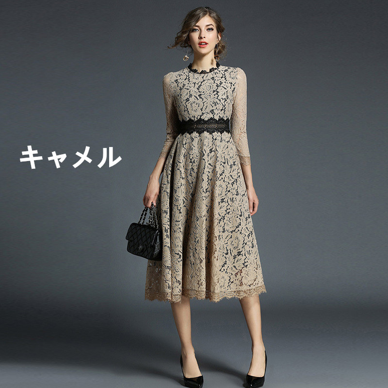美しいレースデザインとウエストベルトで体型をきれいに見せてくれるドレスです。