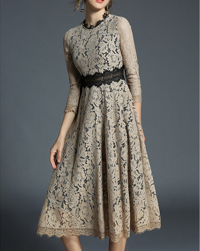 一枚でも着映えする上品な総レースのロングワンピース。