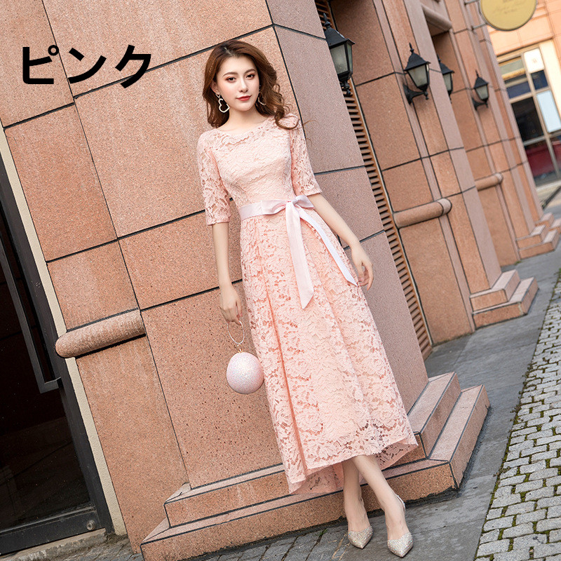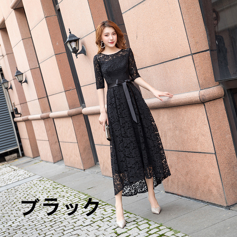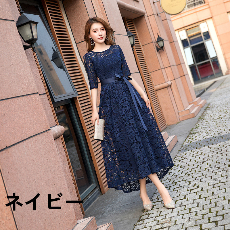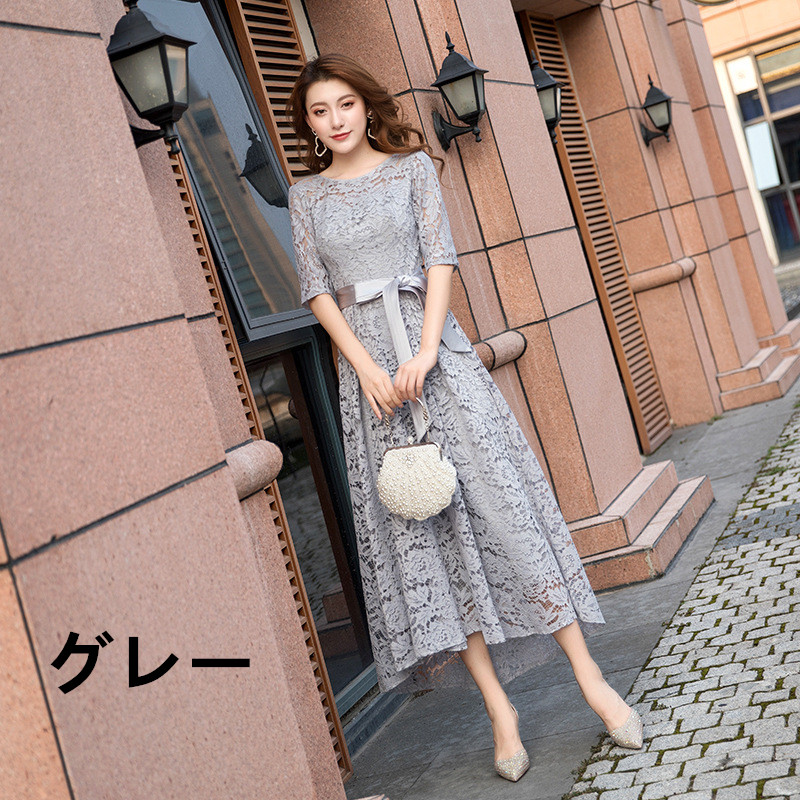 繊細なレースが上品な印象を演出するフォーマルドレスです。