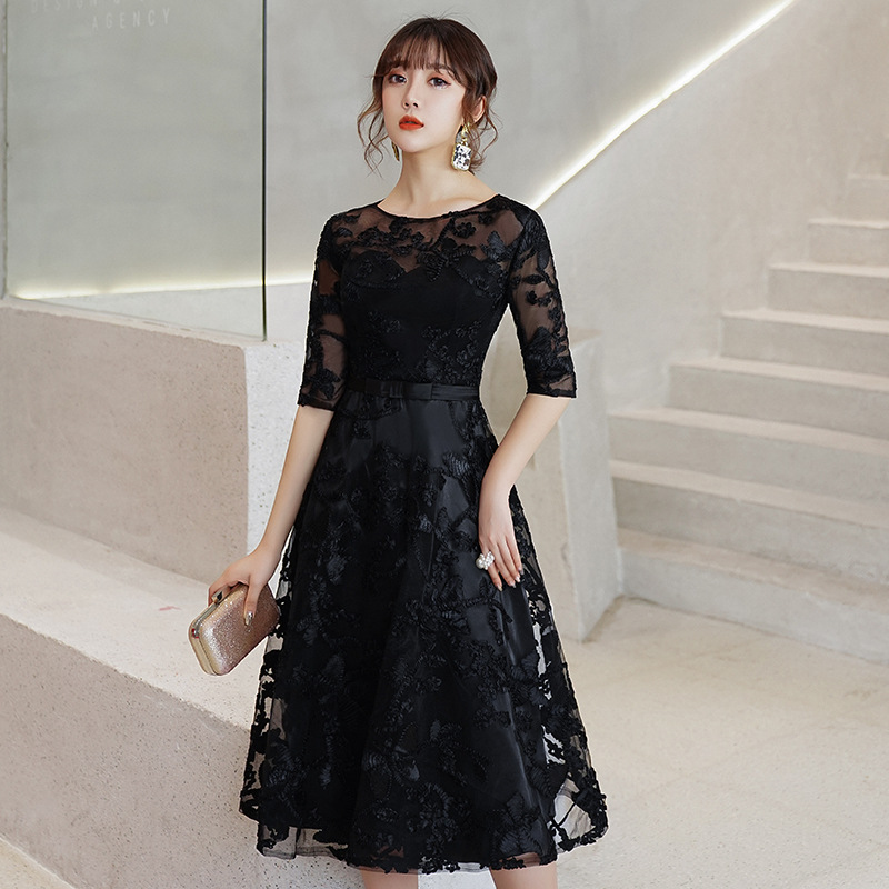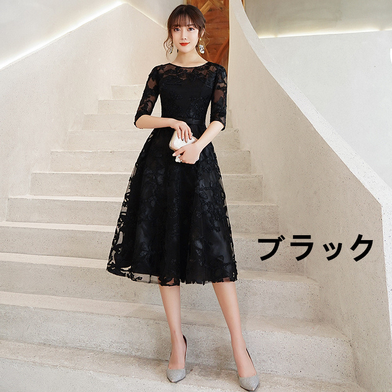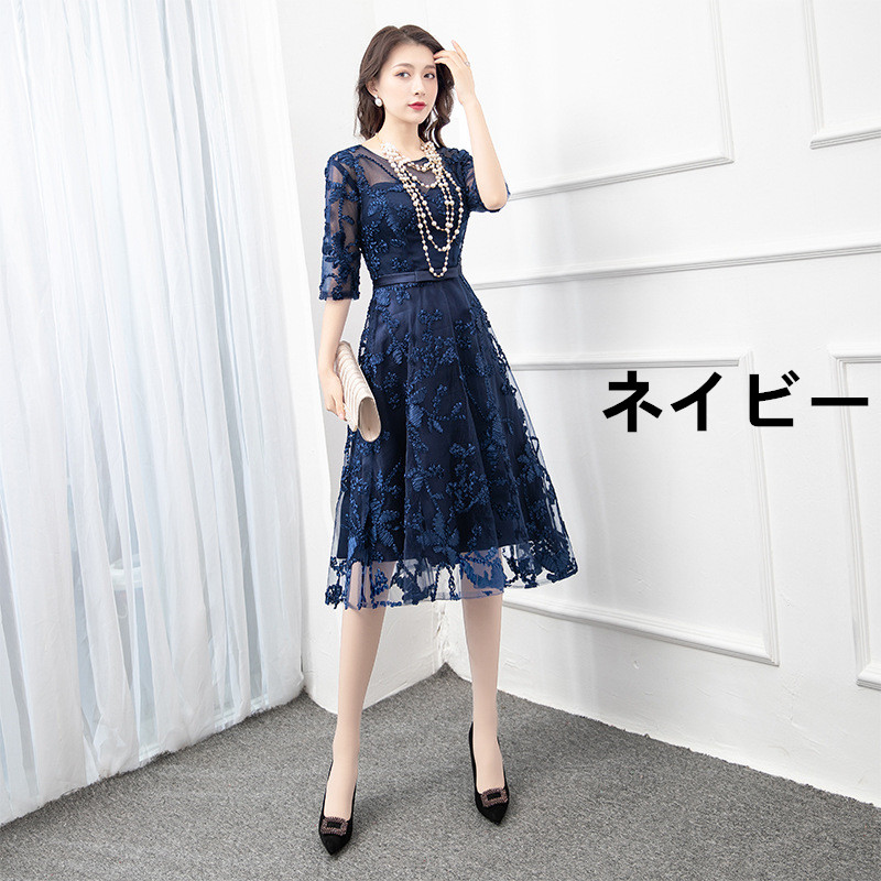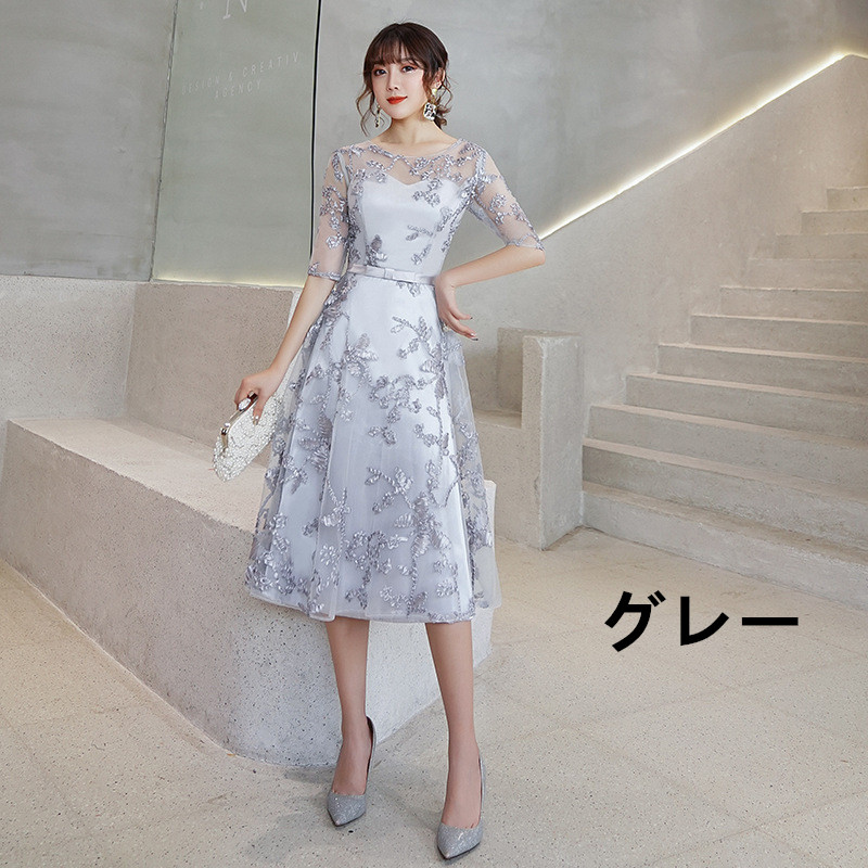ミモレ丈の上品なシルエットで、様々なパーティーシーンを優雅に楽しめるドレスです。