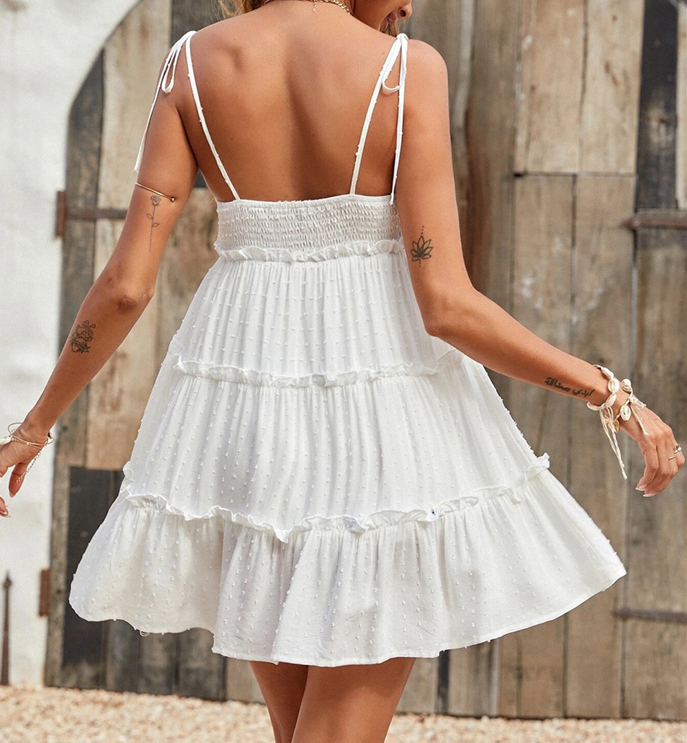 ロングワンピースの魅力を活かした、リゾートや海辺にぴったりの一着。