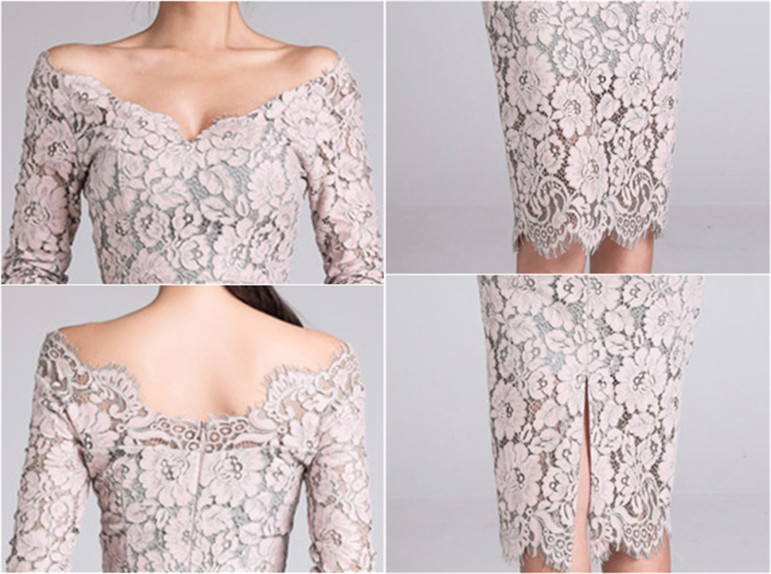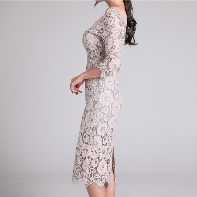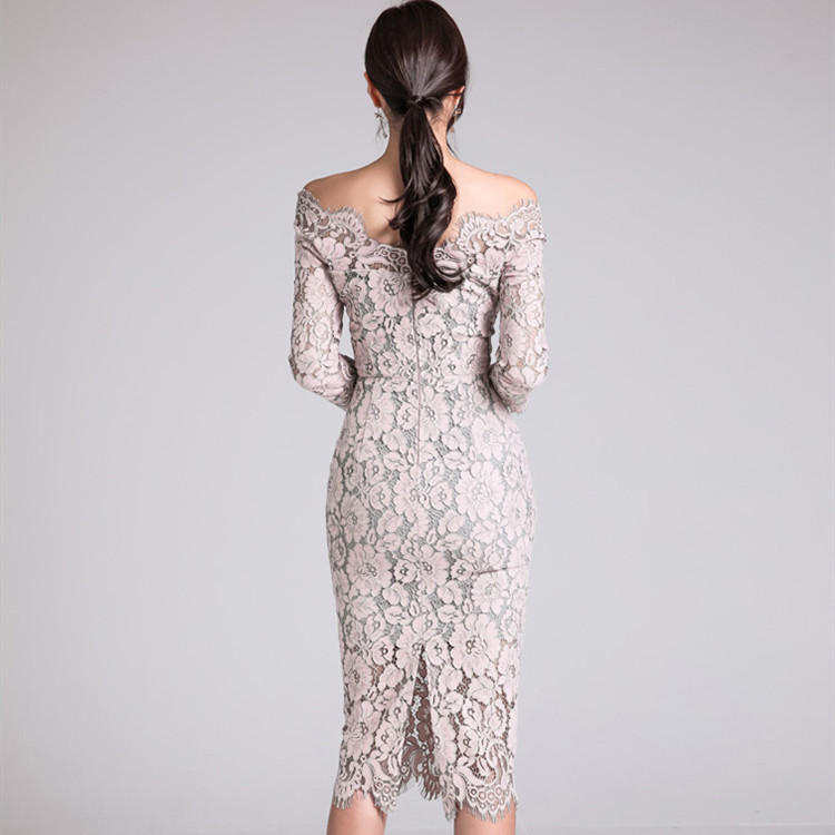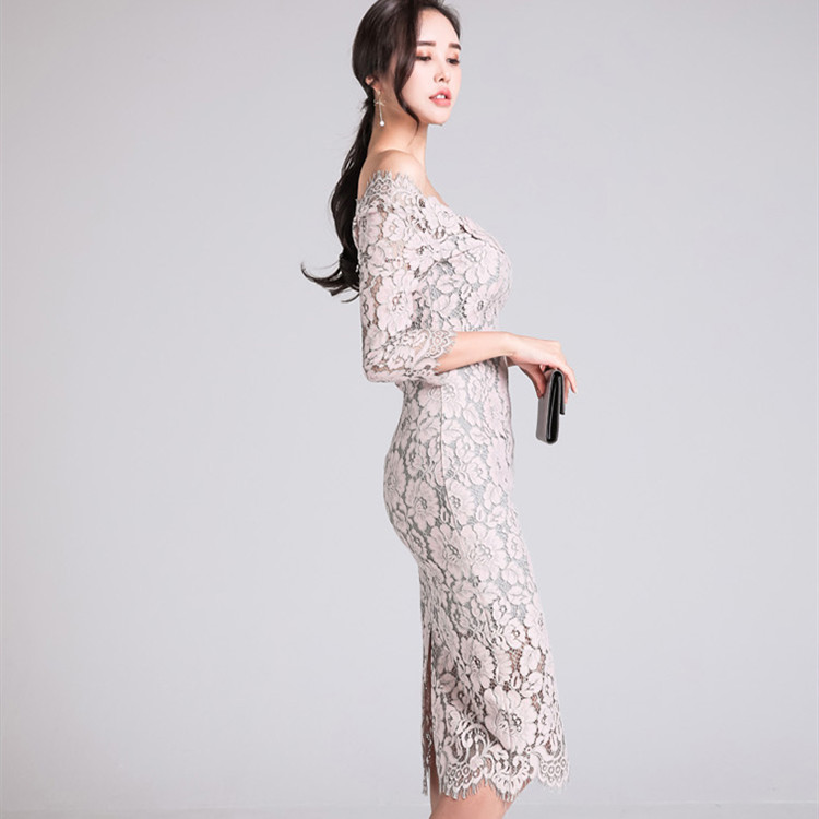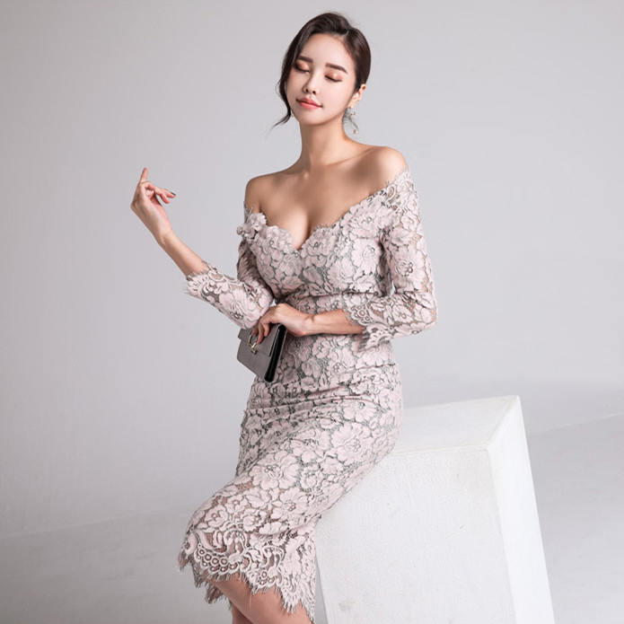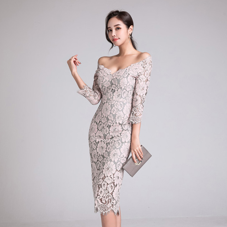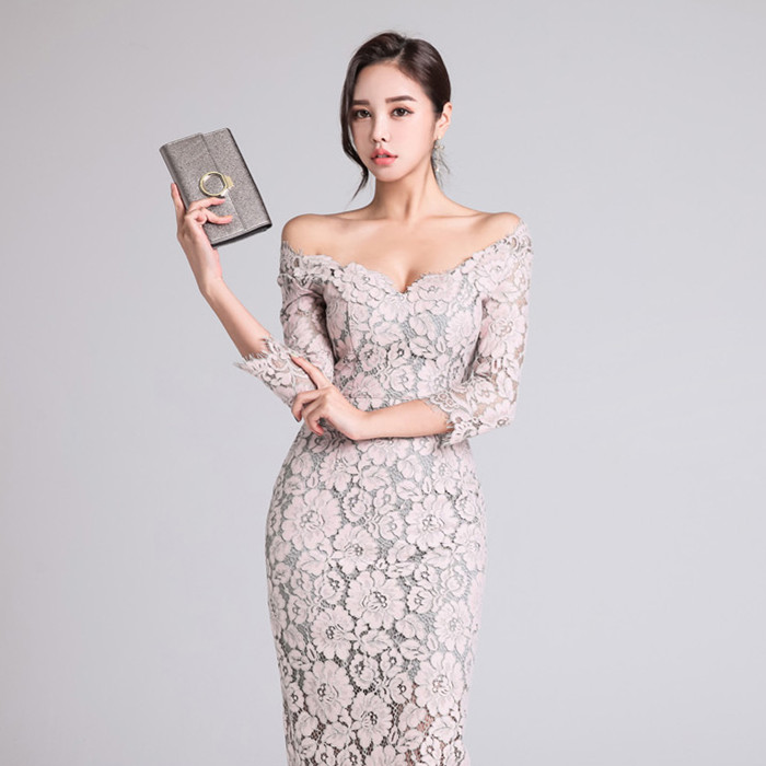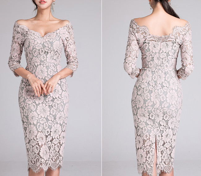 上品なレースが美しいオフショルダーのフォーマルドレス。