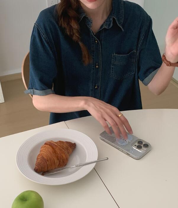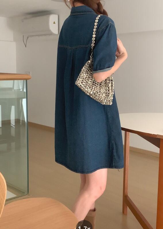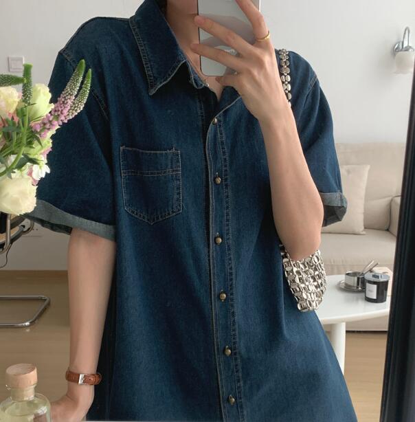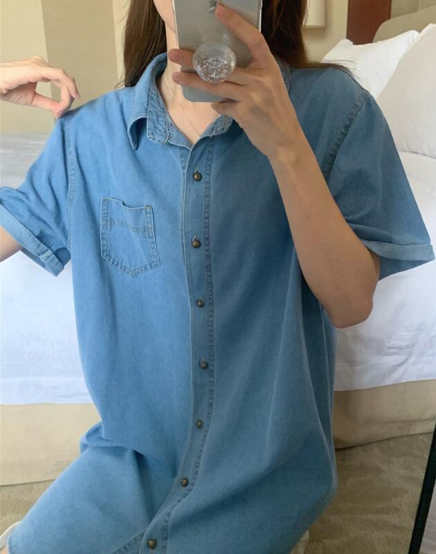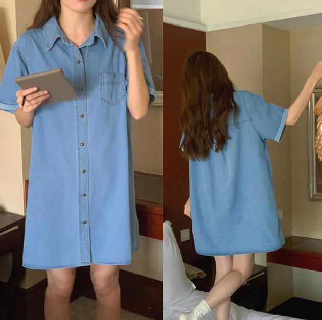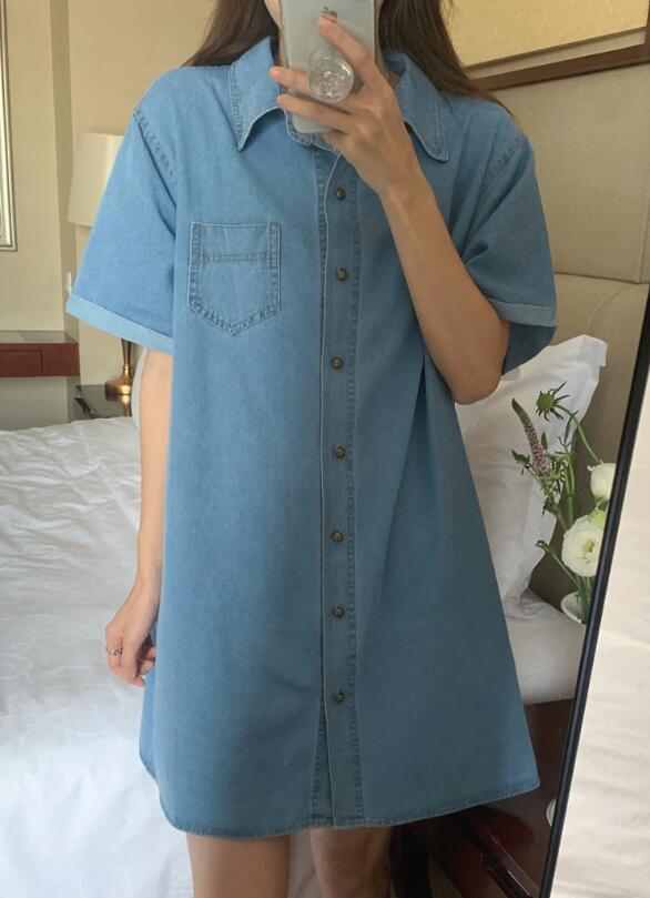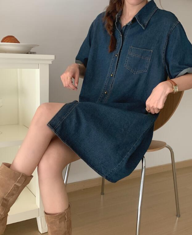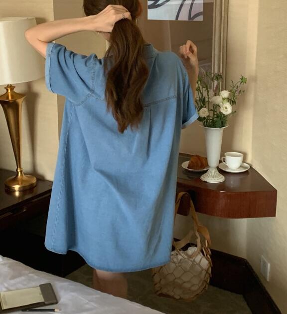 今年らしいデニム素材を使用したミニ丈のシャツワンピース。