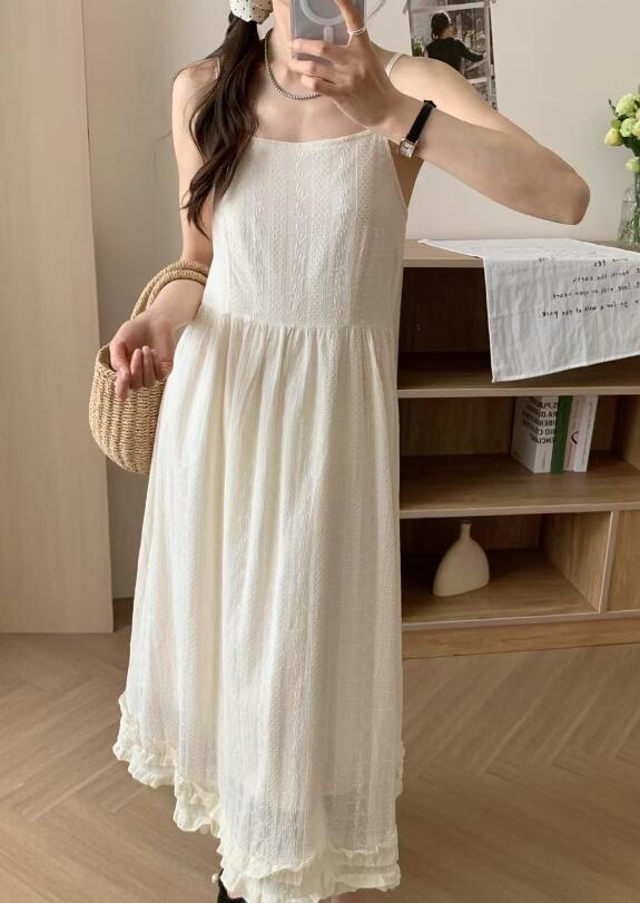 上品な白色生地に裾のフリルデザインが女性らしさを演出します。
